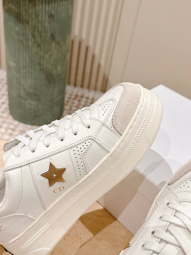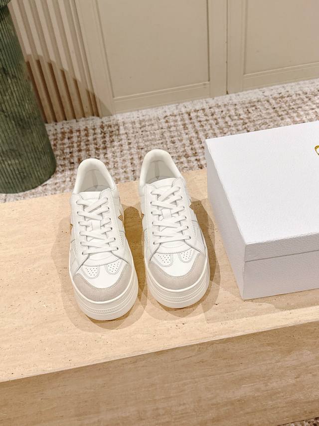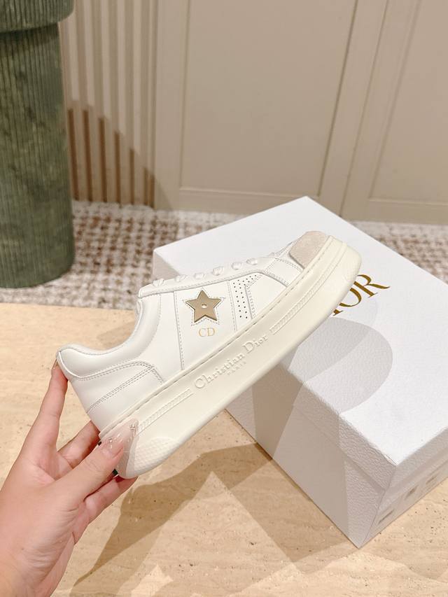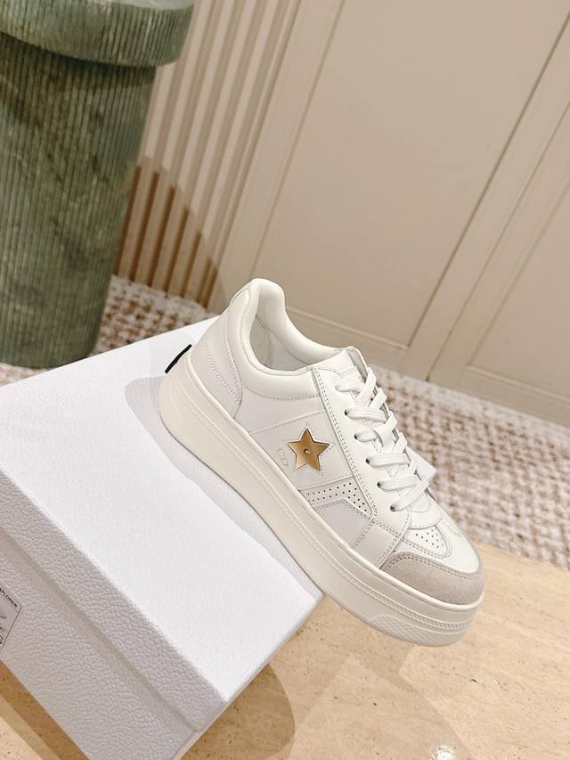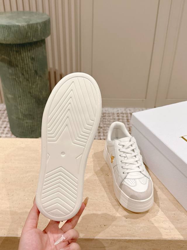 C016-1代购级别Dior迪奥新款松糕鞋厚底休闲鞋 这款Dior Star运动鞋延续经久不衰的轮廓,采用牛皮革精心制作,所以上脚会特别的舒服哦 饰以同色调绒面革镶片金属星星装饰鞋带孔眼,提升格调。款式轻盈搭配“Christian Dior”标志薄鞋底,四季皆宜,可与各式休闲造型搭配,增添点睛之笔 经典超耐看 鞋面牛皮拼接 原版Ip 大底。 码数:35-40码 全套专柜同步礼盒包装