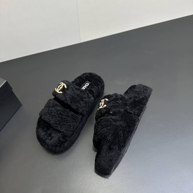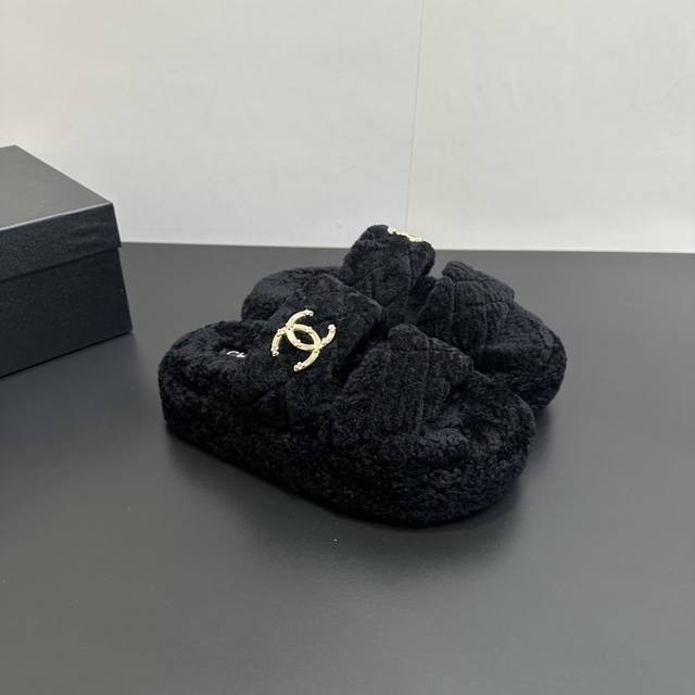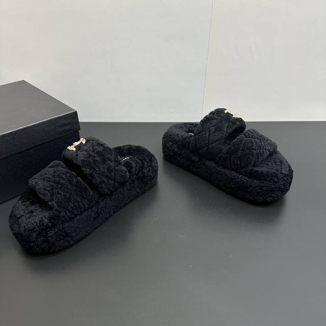 / Chanel小香风香奈儿 2025新款秋冬懒羊羊真羊毛懒人拖 小香菱格厚底毛拖 面料: 澳洲进口羊羔毛 內里: 羊皮 大底:橡胶底 码数:35-39 40.41
