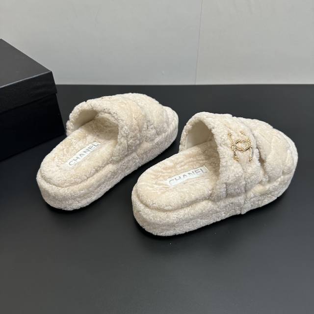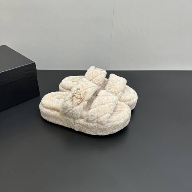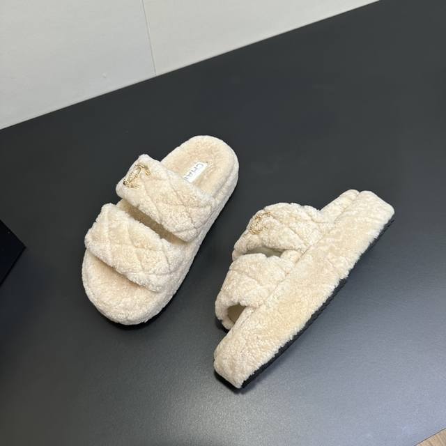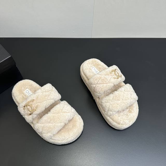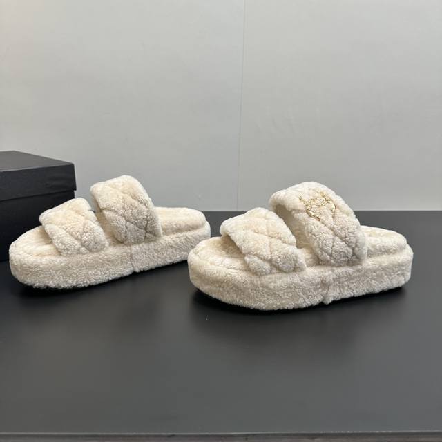 / Chanel小香风香奈儿 2025新款秋冬懒羊羊真羊毛懒人拖 小香菱格厚底毛拖 面料: 澳洲进口羊羔毛 內里: 羊皮 大底:橡胶底 码数:35-39 40.41