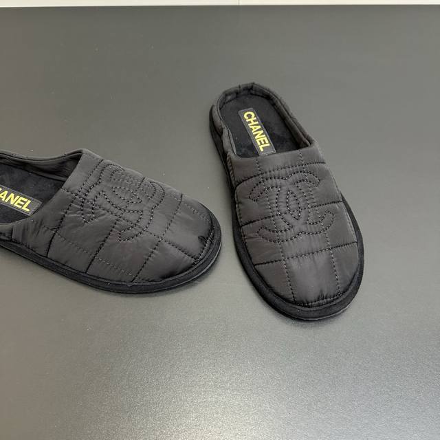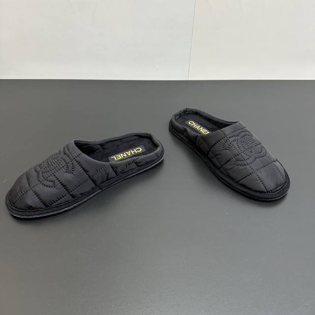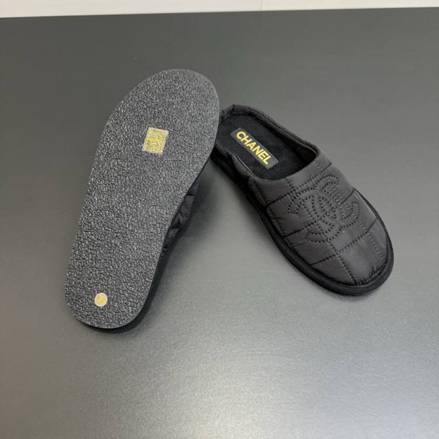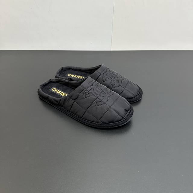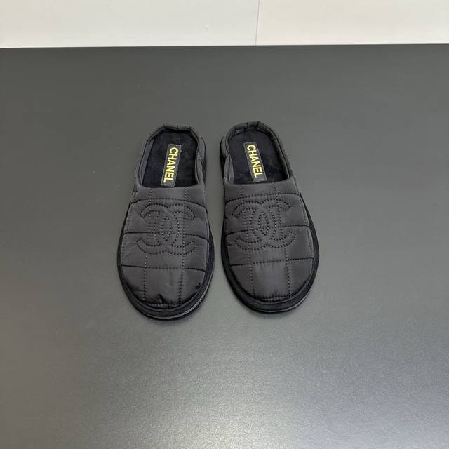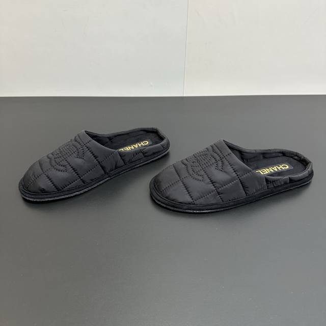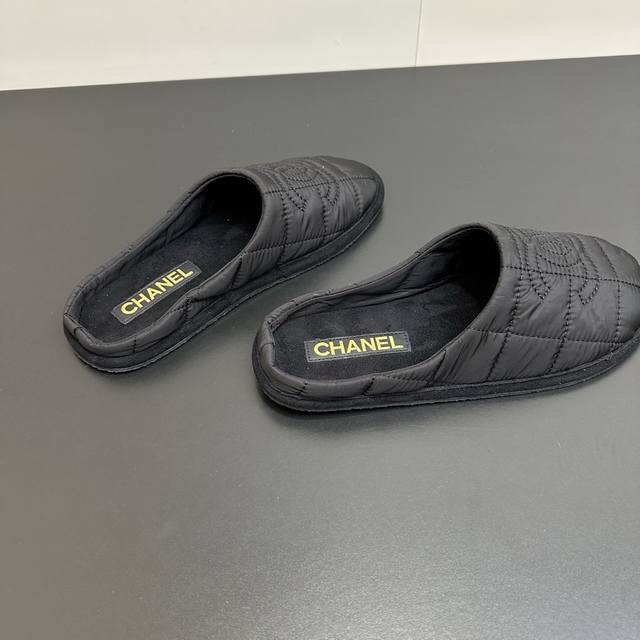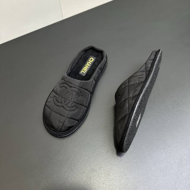 Chanel香奈儿小香风新款室内拖鞋包头半拖 香奈儿这款拖鞋太可啦!简约又有质感,经典绗缝设计搭配品牌标识,精致感拉满。有多种颜色可选,脚感舒适,不管是居家放松,还是搭配日常穿搭出街,都很合适~ ★鞋面采用原版羽绒布,布面内里,毛巾布垫脚,原版开模橡胶大底,码数35-39 40、41定做