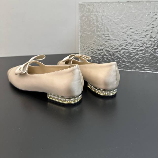 Chanel香奈儿小香风香奈儿珍珠跟蝴蝶结单鞋玛丽珍鞋,将经典优雅与时尚完美融合。标志性的拼色设计,光泽漆皮与柔和皮质碰撞,复古又吸睛。小巧蝴蝶结点缀,加上精致