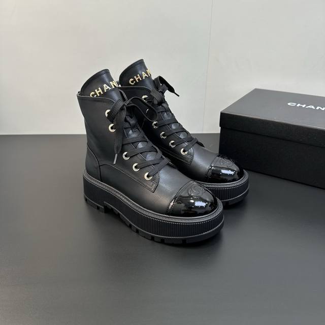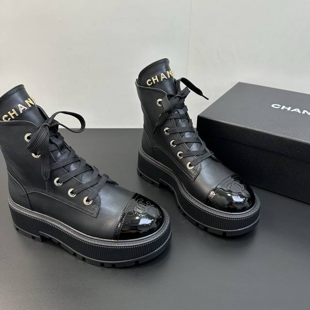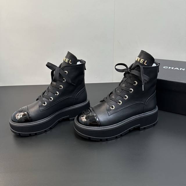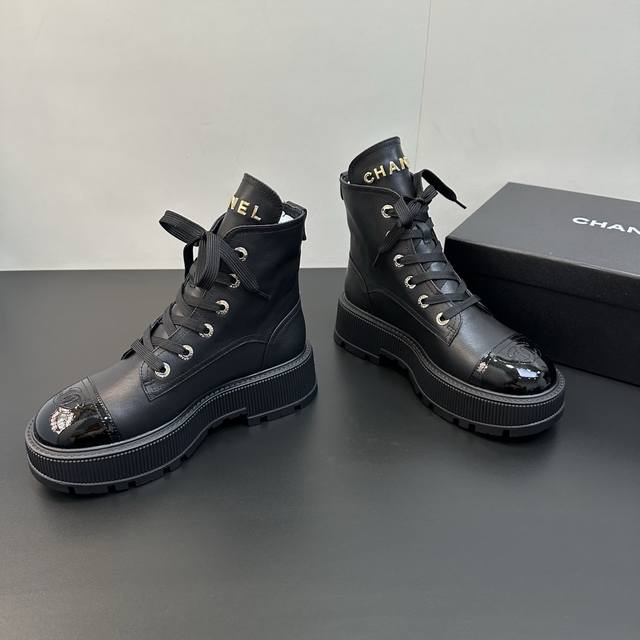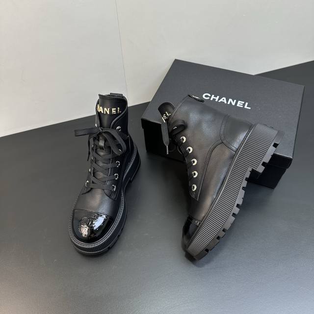 / Chanel香奈儿小香2025秋冬羊皮系带短靴新品 版型也香家马丁靴基础版型,利落帅气 鞋面用了牛皮,超级柔软的贴肤感,挺阔饱满,帅气拿捏! 内里柔软水染小羊皮