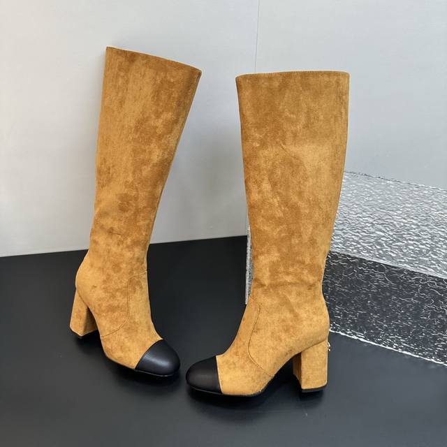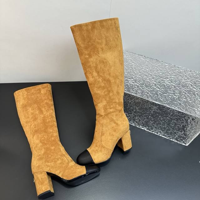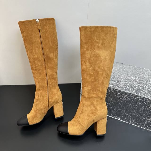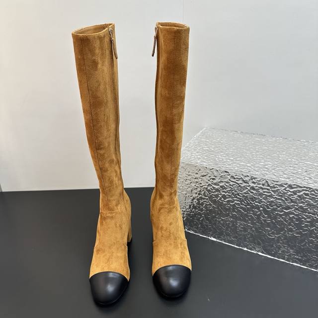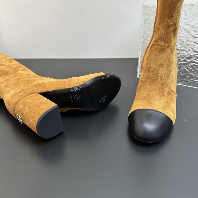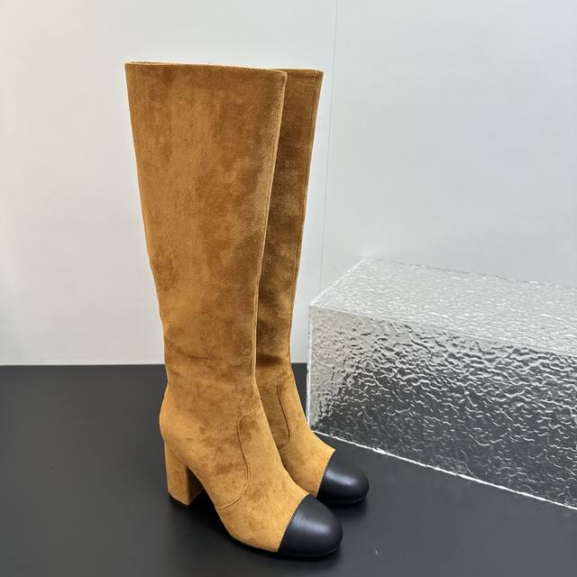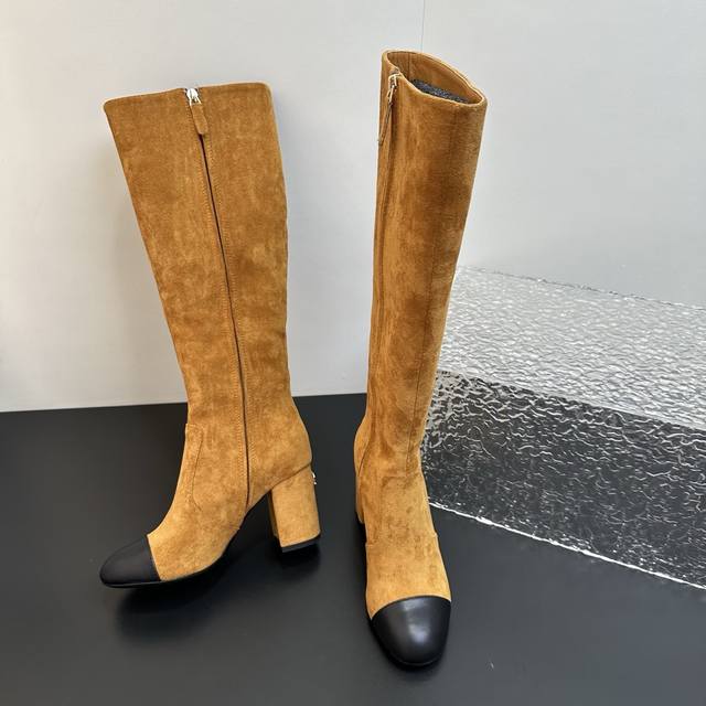Chanel香奈儿新款拼接长靴,简约大方,此款时尚百搭脚感舒适,磨砂布面,羊皮内里,真皮大底,跟高7Cm 码数:35-39 40 41订做不退不换