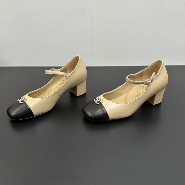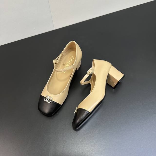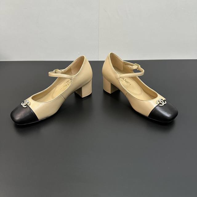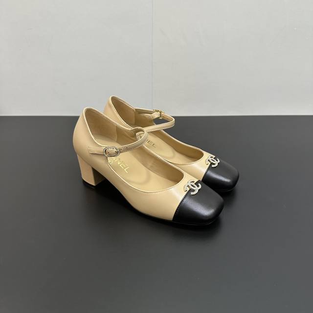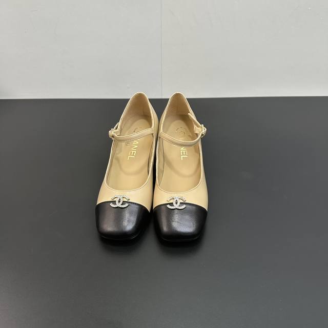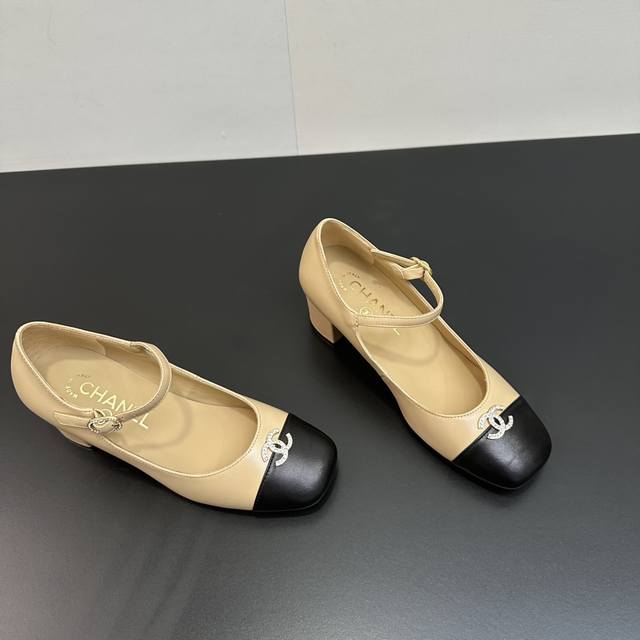 Chanel~~香奈儿经典百搭高跟拼接单鞋玛丽珍女鞋 超级受棒的一款玛丽珍芭蕾小单鞋,小方鞋头丑萌萌的太经典啦皮质软乎乎真的很舒适 经典拼接配色很好看,小C水钻