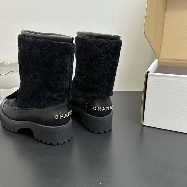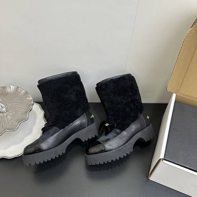 / Chanel香奈儿 秋冬经典款 小香拼接羊毛羊羔毛短靴短筒厚底雪地靴 可帅气可温柔的小香靴子 ,搭配羊毛靴筒 设计真的绝绝子 ,看起来就是不一般的短靴靴筒笔直有