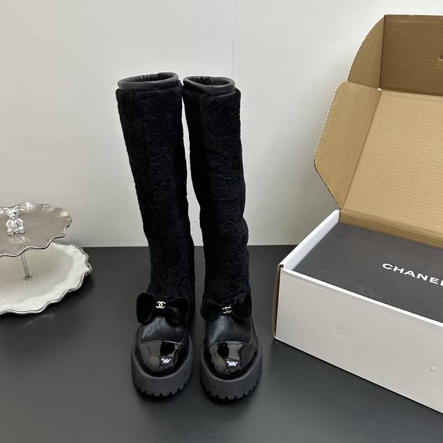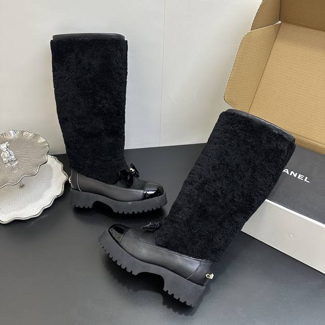 Chanel香奈儿 秋冬经典款 小香拼接羊毛羊羔毛长靴高筒厚底雪地靴 可帅气可温柔的小香靴子 ,搭配羊毛靴筒 设计真的绝绝子 ,看起来就是不一般的高靴靴筒笔直有
