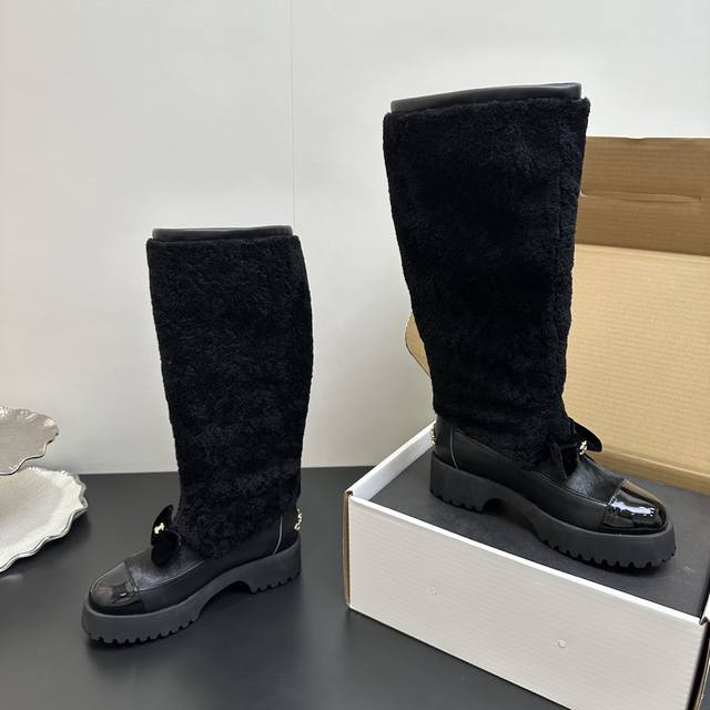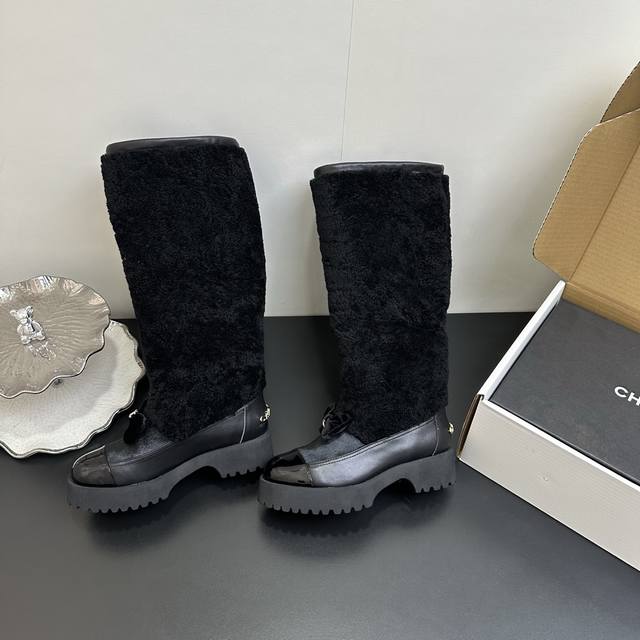 / Chanel香奈儿 秋冬经典款 小香拼接羊毛羊羔毛长靴高筒厚底雪地靴 可帅气可温柔的小香靴子 ,搭配羊毛靴筒 设计真的绝绝子 ,看起来就是不一般的高靴靴筒笔直有