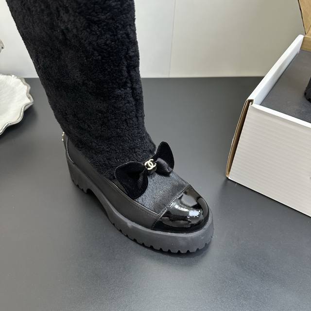 Chanel香奈儿 秋冬经典款 小香拼接羊毛羊羔毛长靴高筒厚底雪地靴 可帅气可温柔的小香靴子 ,搭配羊毛靴筒 设计真的绝绝子 ,看起来就是不一般的高靴靴筒笔直有型且不失柔软度 也不挑人,加上精致蝴蝶结点缀 高级大气 不俗气。上脚酷酷的特有范儿 还特显腿长哦 鞋面:马毛搭配羊皮,羊毛 内里垫脚:羊皮 鞋底:组合大底 筒高38Cm 码数:35-39 40.41定做不退换