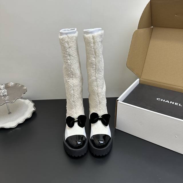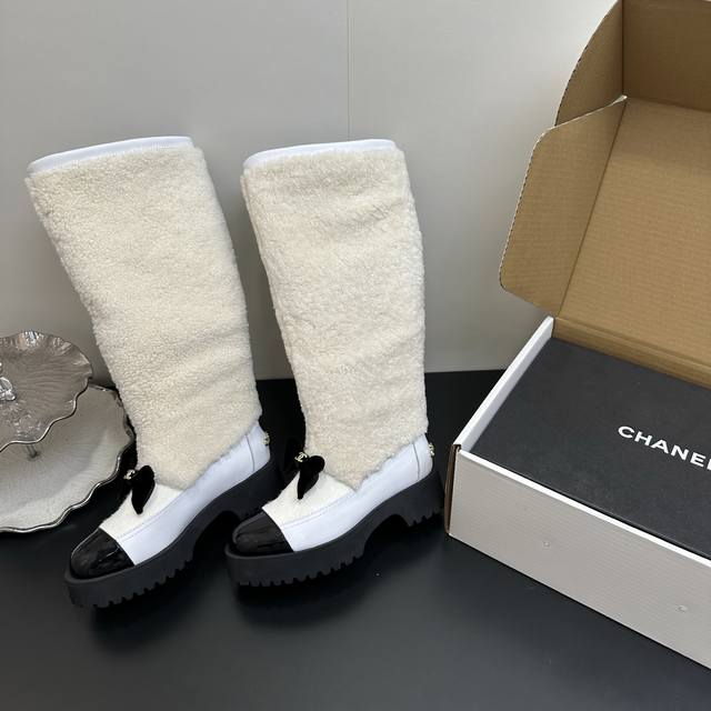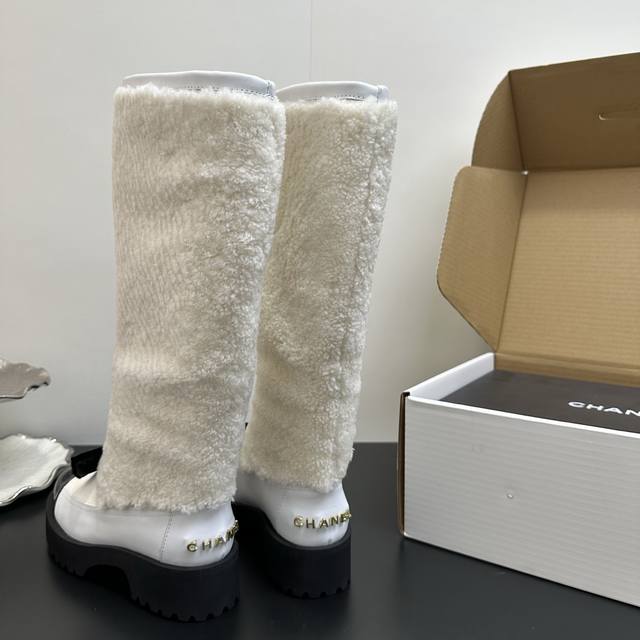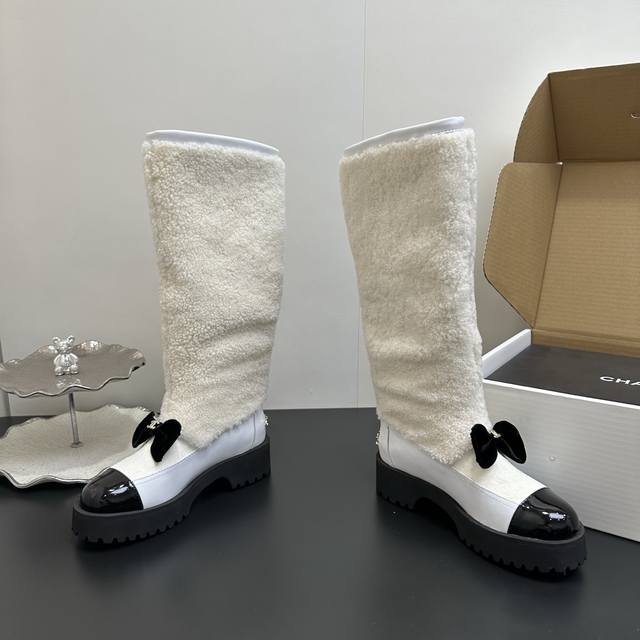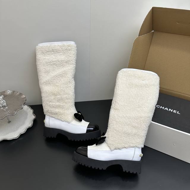 / Chanel香奈儿 秋冬经典款 小香拼接羊毛羊羔毛长靴高筒厚底雪地靴 可帅气可温柔的小香靴子 ,搭配羊毛靴筒 设计真的绝绝子 ,看起来就是不一般的高靴靴筒笔直有