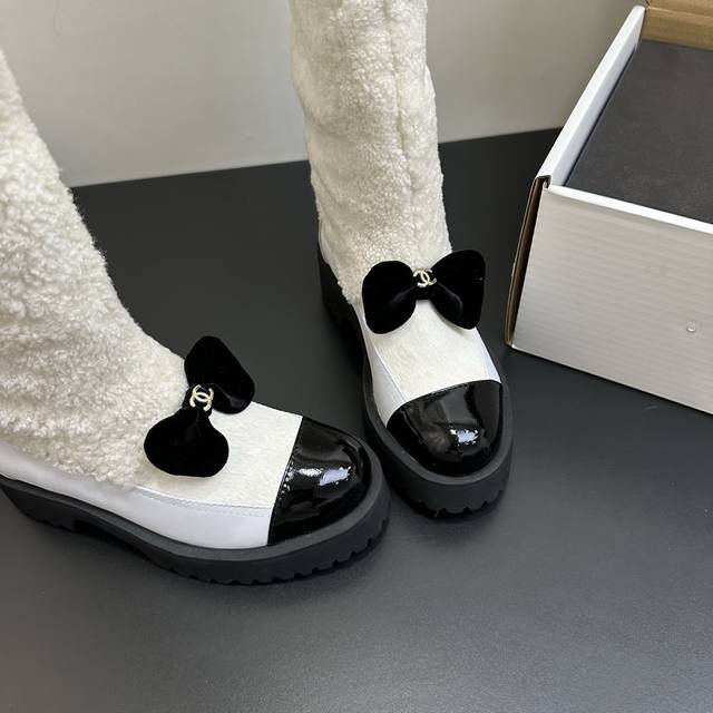 Chanel香奈儿 秋冬经典款 小香拼接羊毛羊羔毛长靴高筒厚底雪地靴 可帅气可温柔的小香靴子 ,搭配羊毛靴筒 设计真的绝绝子 ,看起来就是不一般的高靴靴筒笔直有型且不失柔软度 也不挑人,加上精致蝴蝶结点缀 高级大气 不俗气。上脚酷酷的特有范儿 还特显腿长哦 鞋面:马毛搭配羊皮,羊毛 内里垫脚:羊皮 鞋底:组合大底 筒高38Cm 码数:35-39 40.41定做不退换