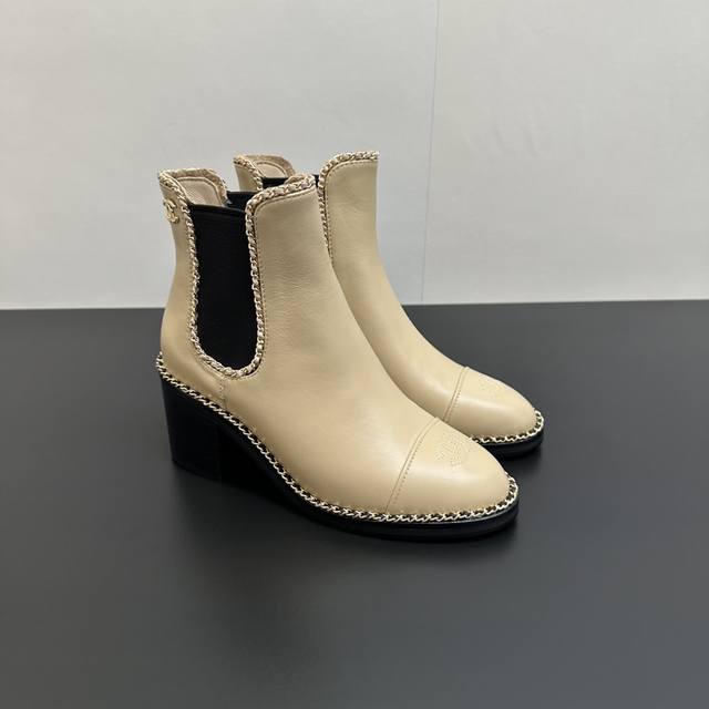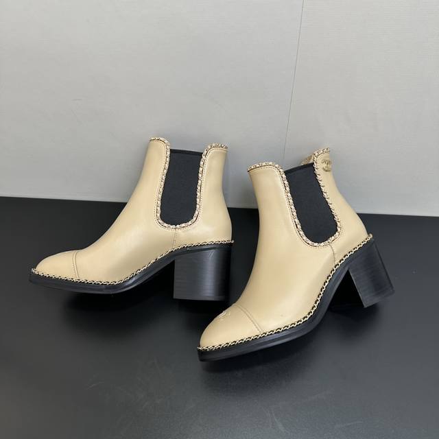 / Chanel香奈儿25Ss 新款秋冬高跟链条松紧短靴 ,楦型百搭瘦脚Yyds.造型立体饱满,上脚舒适 气场十足,橡筋一脚蹬 易穿搭 经典链条五金 高级优雅 鞋面