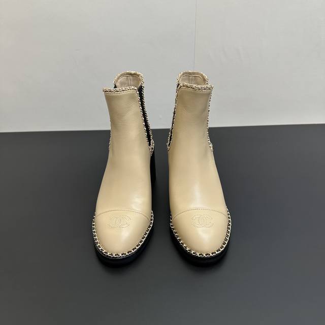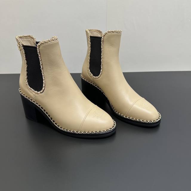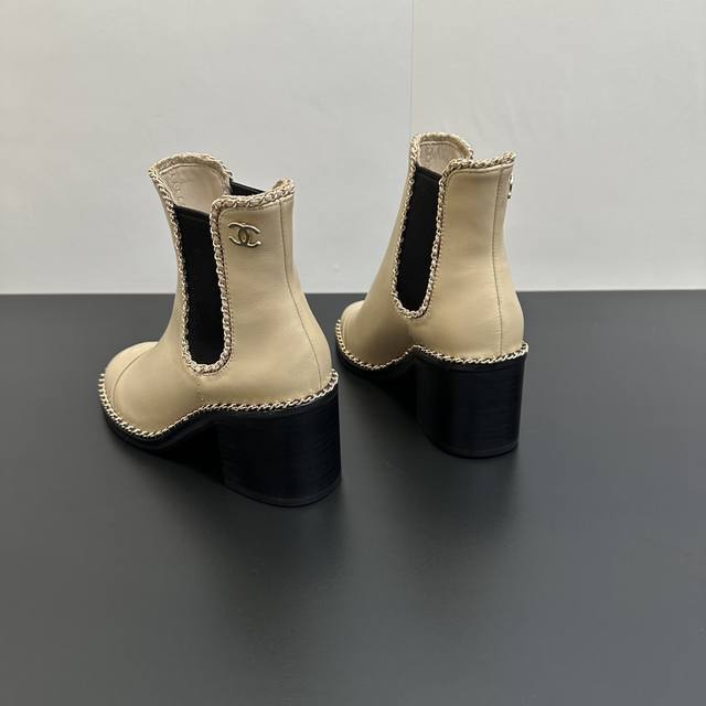 Chanel香奈儿25Ss 新款秋冬高跟链条松紧短靴 ,楦型百搭瘦脚Yyds.造型立体饱满,上脚舒适 气场十足,橡筋一脚蹬 易穿搭 经典链条五金 高级优雅 鞋面