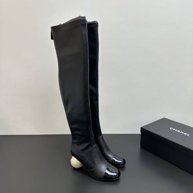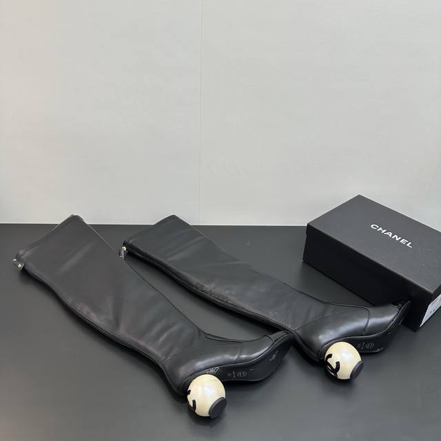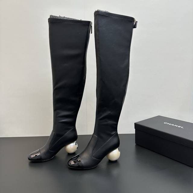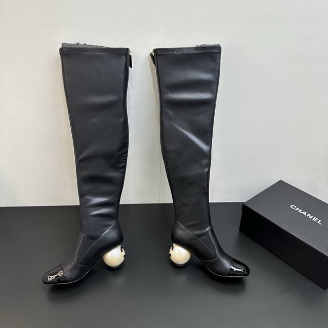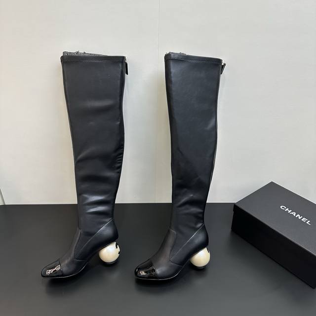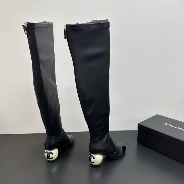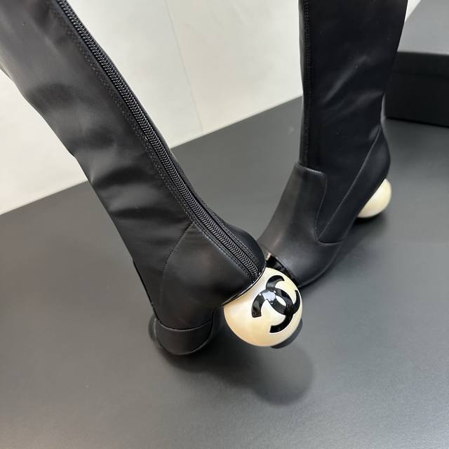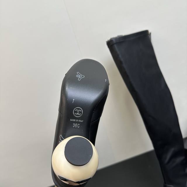 Chanel 小香2025秋冬走秀款双C巨型珍珠跟 弹力过膝靴高跟长靴 在米兰时尚的T台上 亮相便艳惊四座,成功晋升为潮流人士的梦中情靴 。经典的双C标志与巨型珍珠跟设计相结合,简洁大气又尽显品牌格调 随便一拍都很出片。那巨型珍珠鞋跟更是神来之笔,突破常规的设计 不仅为整体增添了奢华浪漫的氛围 。 鞋面采用高品质弹力材质 能完美贴合小腿线条 修饰腿型 让双腿看起来笔直修长,而且穿脱方便 行走时也不会有束缚感。从繁华都市的街头 派对的现场 它都能轻松适配,搭配一条修身牛仔裤 瞬间化身酷飒的街头潮人,换上一袭