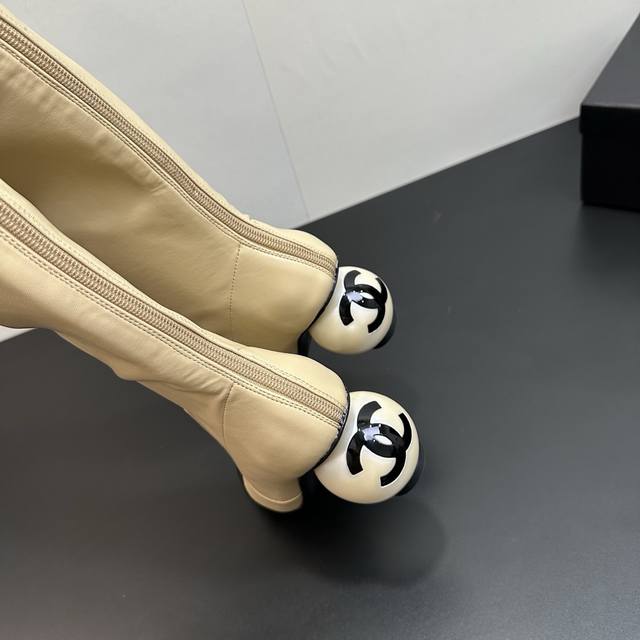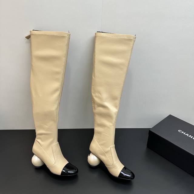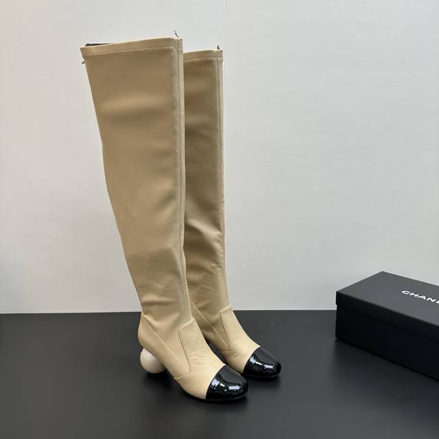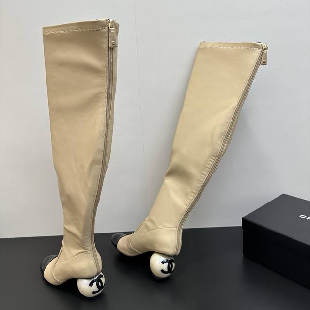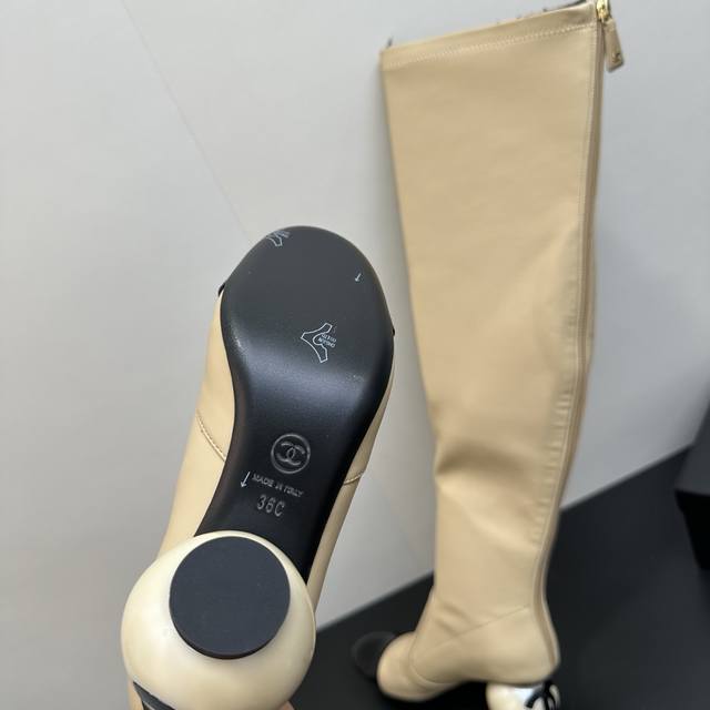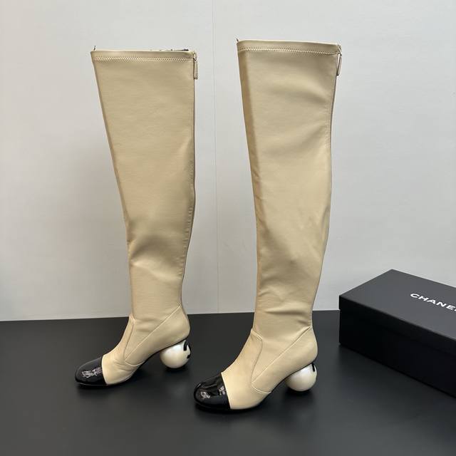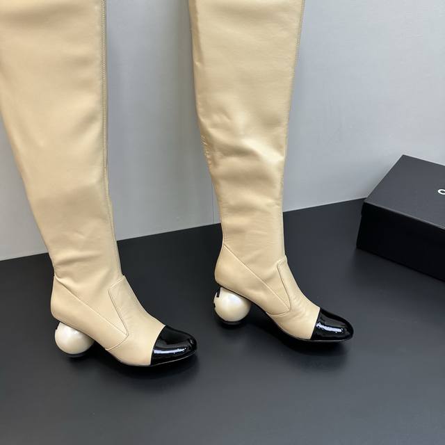 Chanel 小香2025秋冬走秀款双C巨型珍珠跟 弹力过膝靴高跟长靴 在米兰时尚的T台上 亮相便艳惊四座,成功晋升为潮流人士的梦中情靴 。经典的双C标志与巨型珍珠跟设计相结合,简洁大气又尽显品牌格调 随便一拍都很出片。那巨型珍珠鞋跟更是神来之笔,突破常规的设计 不仅为整体增添了奢华浪漫的氛围 。 鞋面采用高品质弹力材质 能完美贴合小腿线条 修饰腿型 让双腿看起来笔直修长,而且穿脱方便 行走时也不会有束缚感。从繁华都市的街头 派对的现场 它都能轻松适配,搭配一条修身牛仔裤 瞬间化身酷飒的街头潮人,换上一袭