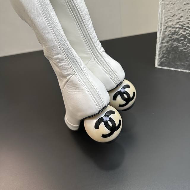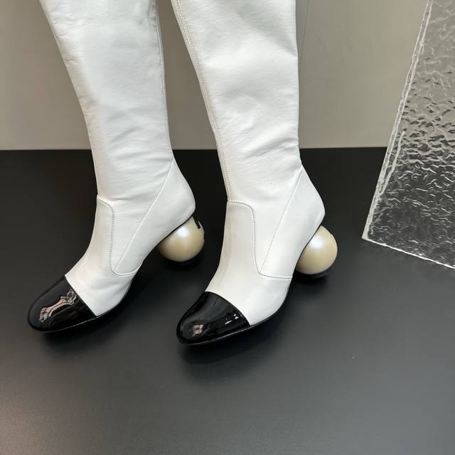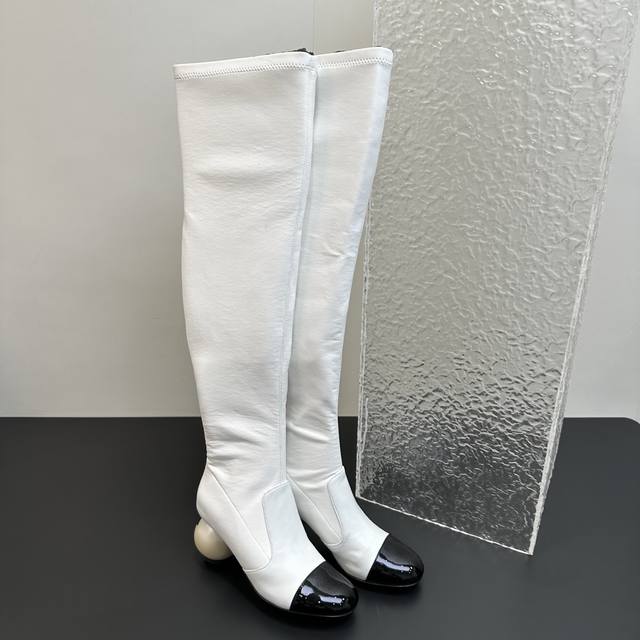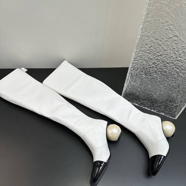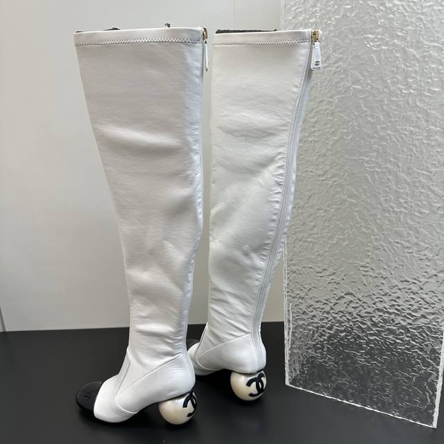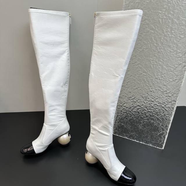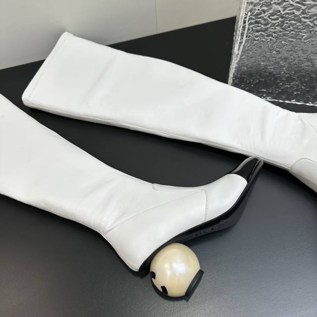 Chanel 小香2025秋冬走秀款双C巨型珍珠跟 弹力过膝靴高跟长靴 在米兰时尚的T台上 亮相便艳惊四座,成功晋升为潮流人士的梦中情靴 。经典的双C标志与巨型珍珠跟设计相结合,简洁大气又尽显品牌格调 随便一拍都很出片。那巨型珍珠鞋跟更是神来之笔,突破常规的设计 不仅为整体增添了奢华浪漫的氛围 。 鞋面采用高品质弹力材质 能完美贴合小腿线条 修饰腿型 让双腿看起来笔直修长,而且穿脱方便 行走时也不会有束缚感。从繁华都市的街头 派对的现场 它都能轻松适配,搭配一条修身牛仔裤 瞬间化身酷飒的街头潮人,换上一袭