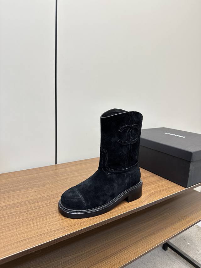 Chanel 香奈儿*秋冬新款小香短靴 长靴660 这款骑士靴真的是帅气时尚的代表,靴筒口双C电绣Logo 低调不失奢华!简约时尚个性又大气!自然流畅的美感,有种惊艳了时光的美感,冬日也要展现大长腿~ 鞋面:小牛皮 高丝光牛反绒 内里:羊皮内里 跟高:4Cm 码数:35-39 40,41定制不退换 鞋底:意大利加厚双层真皮大底