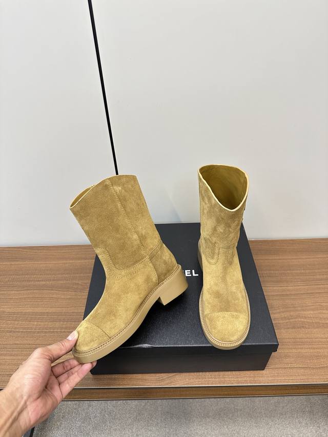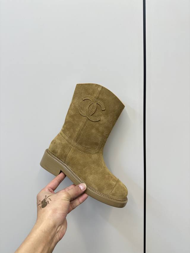 Chanel 香奈儿*秋冬新款小香短靴 长靴660 这款骑士靴真的是帅气时尚的代表,靴筒口双C电绣Logo 低调不失奢华!简约时尚个性又大气!自然流畅的美感,有种惊艳了时光的美感,冬日也要展现大长腿~ 鞋面:小牛皮 高丝光牛反绒 内里:羊皮内里 跟高:4Cm 码数:35-39 40,41定制不退换 鞋底:意大利加厚双层真皮大底