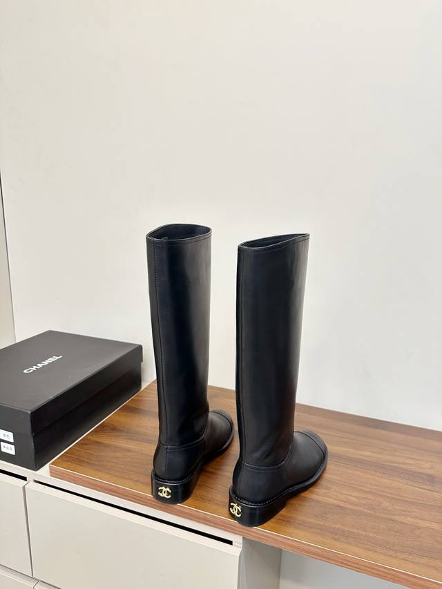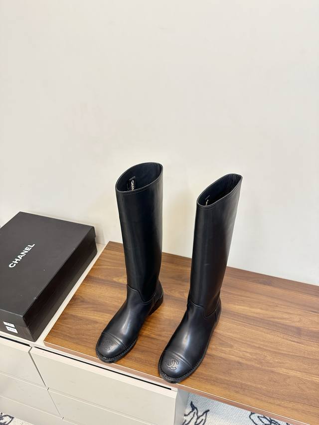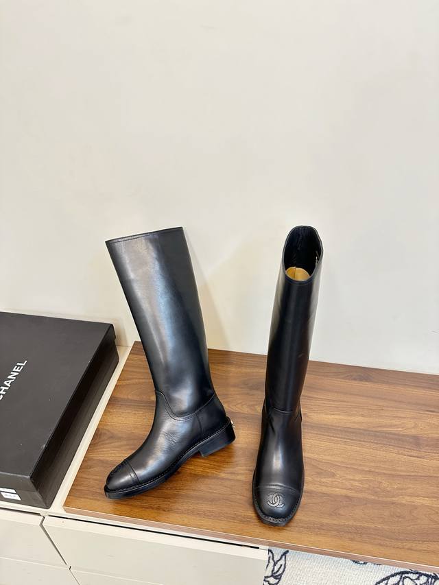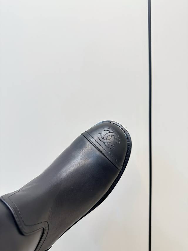 Chanel 香奈儿*秋冬新款小香骑士靴 长靴 这款骑士靴真的是帅气时尚的代表,鞋头双C 刺绣Logo点缀 低调不失奢华!简约时尚个性又大气!自然流畅的美感,有