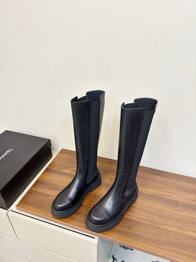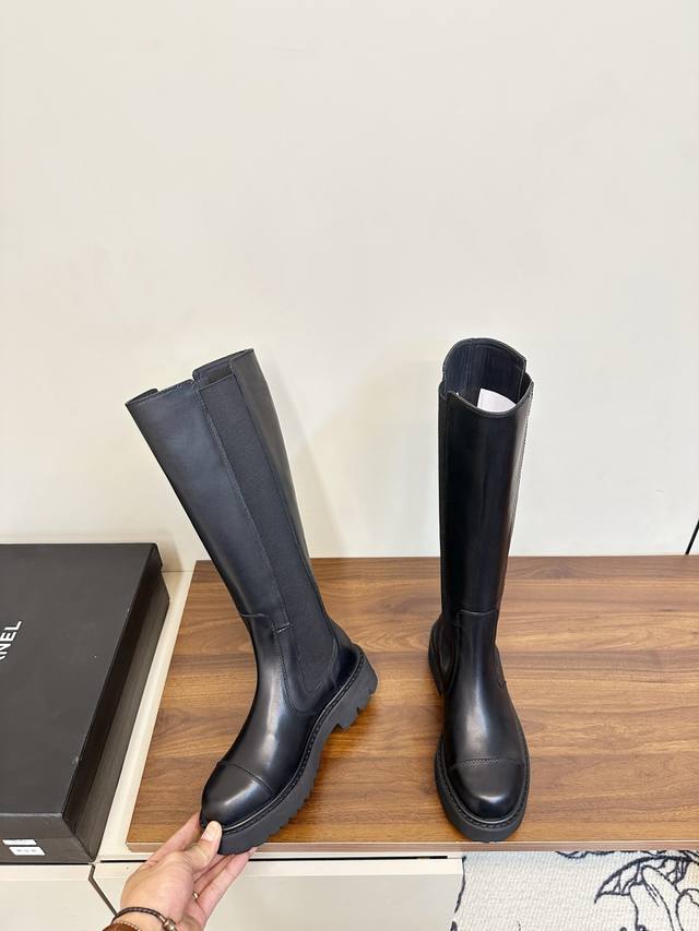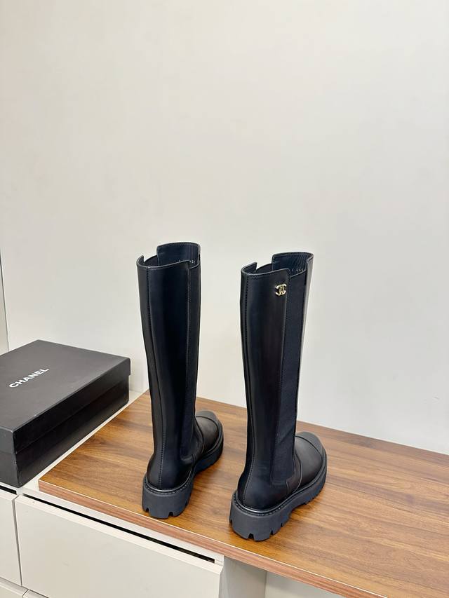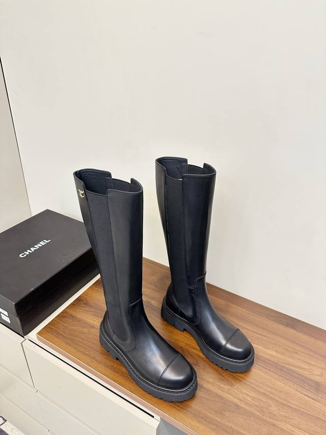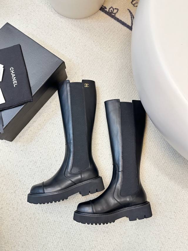 Chanel 24K新款切尔西长靴 骑士靴 秋冬走秀款 上脚特显腿型百搭 任何仙女都可以轻松驾驭 进口小牛皮鞋面 羊皮内里垫脚 原版开模耐磨发泡底、 Size: 35-40 40订做