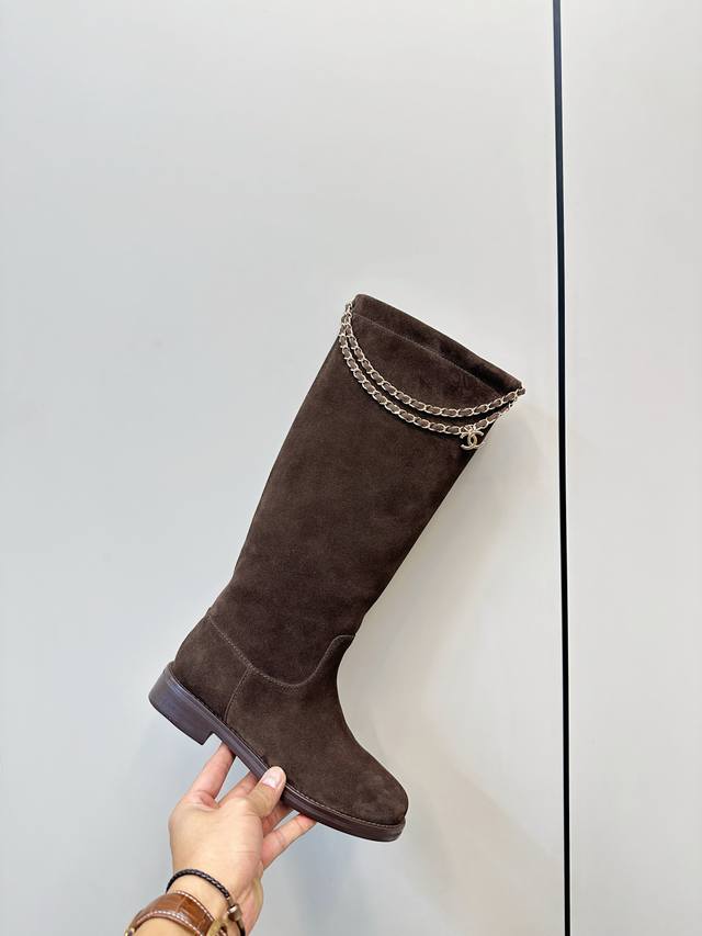 Chanel 25B四叶草 链条 麂皮 骑士靴 长靴 Chanel...
