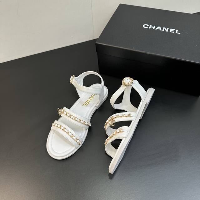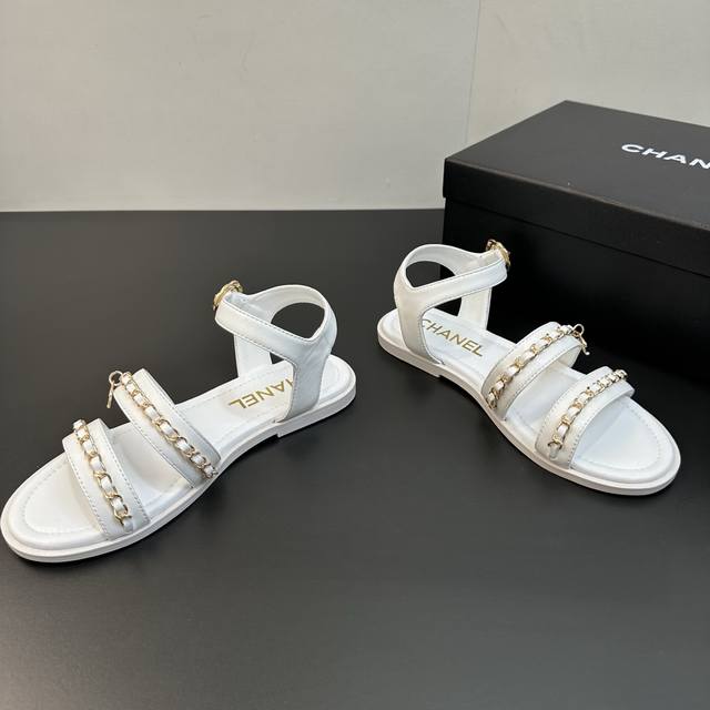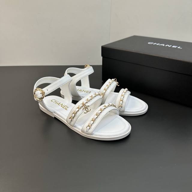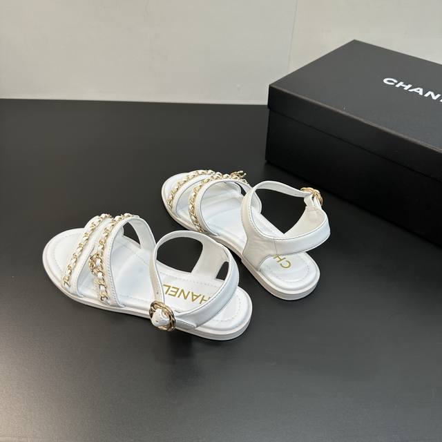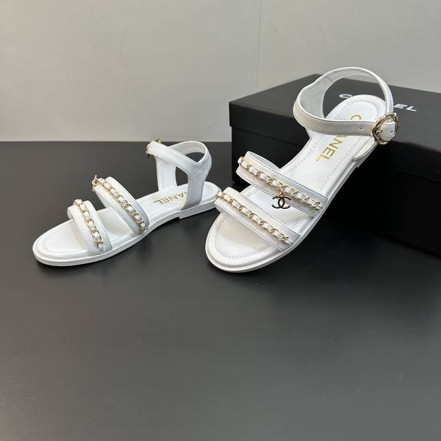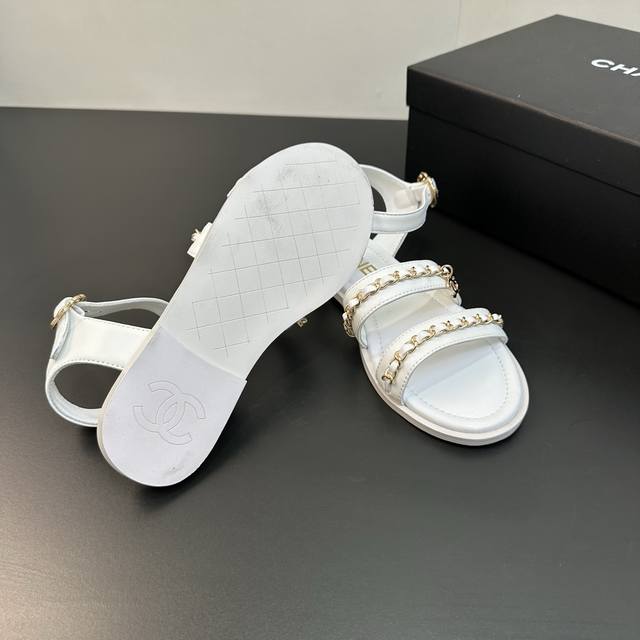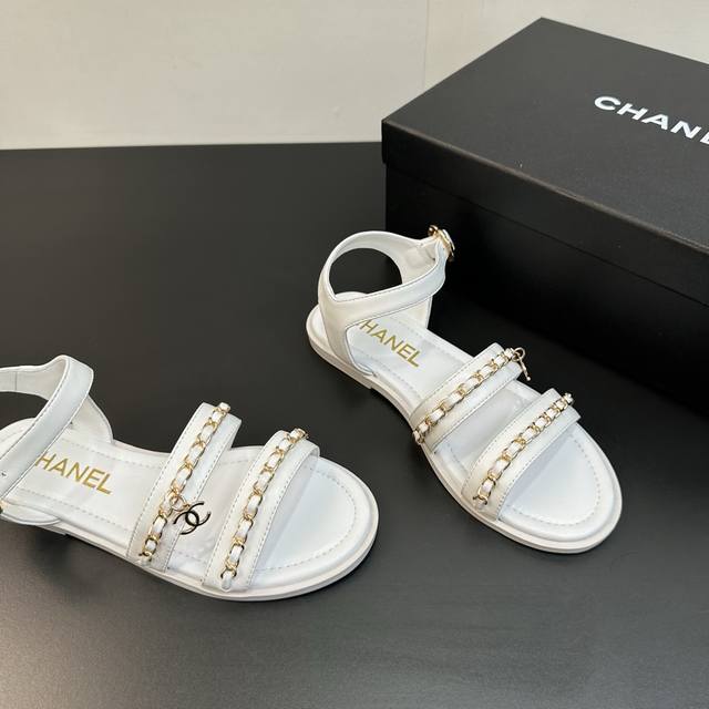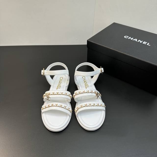 Chanel 25B 小香链条平底高跟厚底底台凉鞋 穿不腻的百搭凉鞋,超经典的一款 休闲中带着精致 气质拿捏稳妥 今年春夏绝美加分宝藏! 链条凉鞋今年的大爆款,