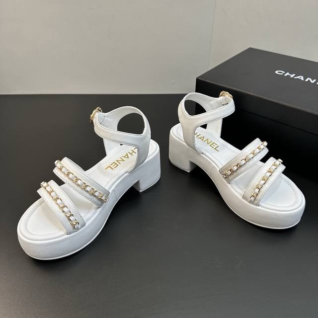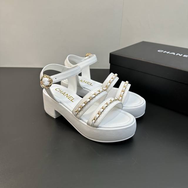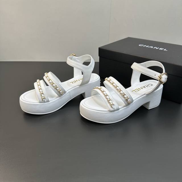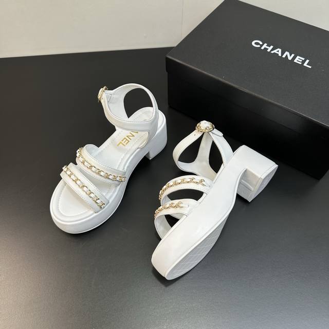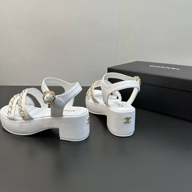 / Chanel 25B 小香链条平底高跟厚底底台凉鞋 穿不腻的百搭凉鞋,超经典的一款 休闲中带着精致 气质拿捏稳妥 今年春夏绝美加分宝藏! 链条凉鞋今年的大爆款,