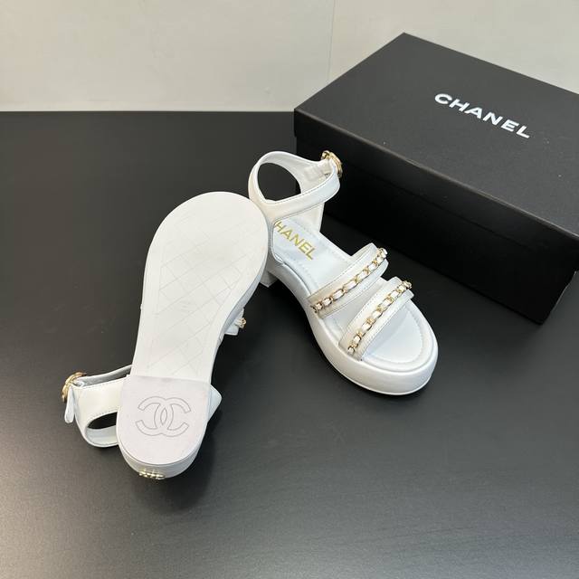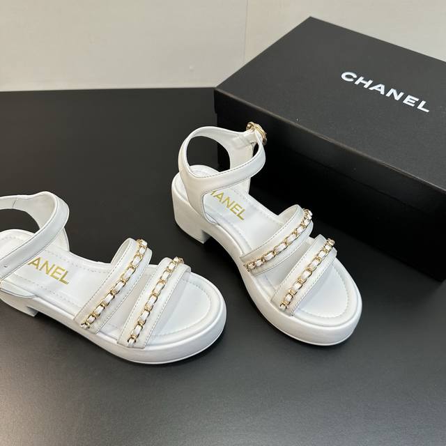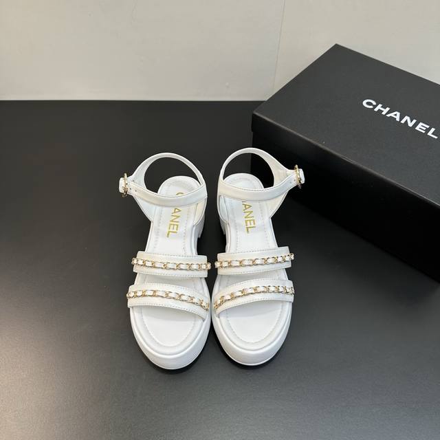 Chanel 25B 小香链条平底高跟厚底底台凉鞋 穿不腻的百搭凉鞋,超经典的一款 休闲中带着精致 气质拿捏稳妥 今年春夏绝美加分宝藏! 链条凉鞋今年的大爆款,已被它的美貌折服得随性自然 ,又有香家经典的霸道,从皮质到五金满满的高级感 ,上脚舒适又洋气! 鞋面:羊皮 内里垫脚:羊皮 高跟:平底 粗跟5Cm 鞋底:橡胶底 码数:35-39 40.41.42定做不退换
