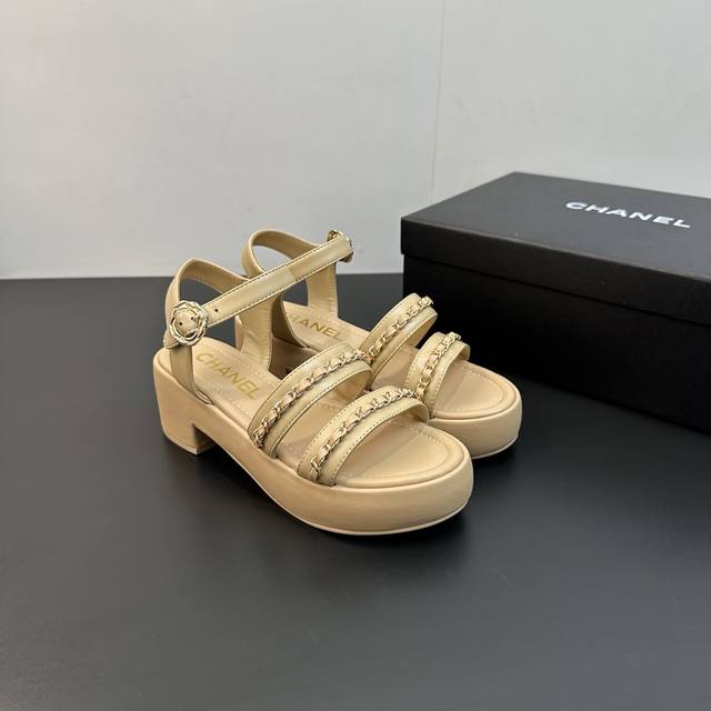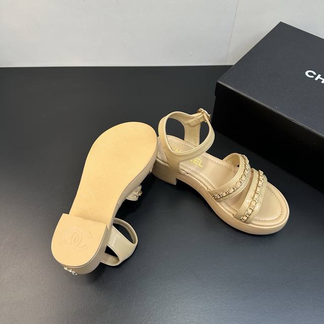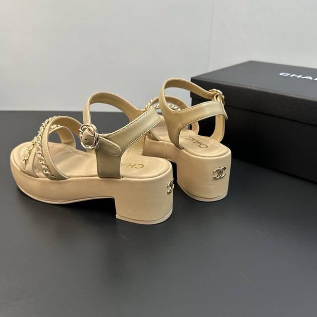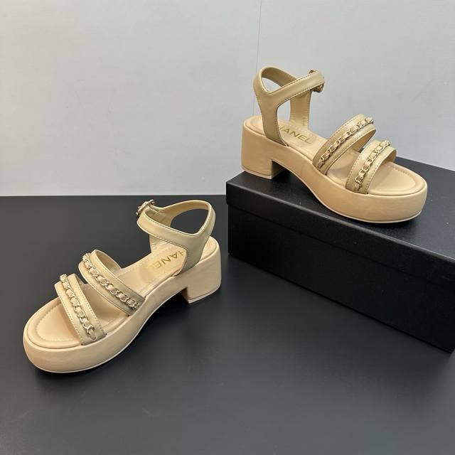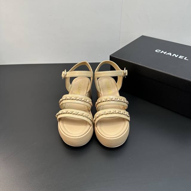 / Chanel 25B 小香链条平底高跟厚底底台凉鞋 穿不腻的百搭凉鞋,超经典的一款 休闲中带着精致 气质拿捏稳妥 今年春夏绝美加分宝藏! 链条凉鞋今年的大爆款,