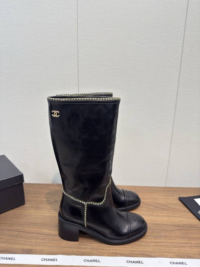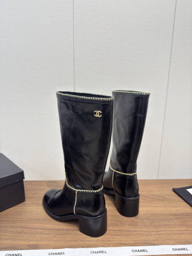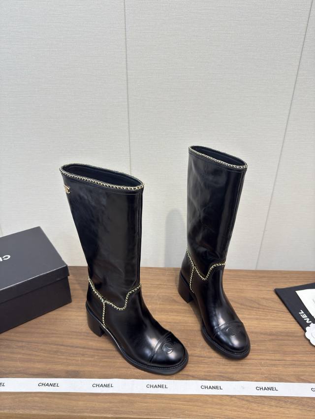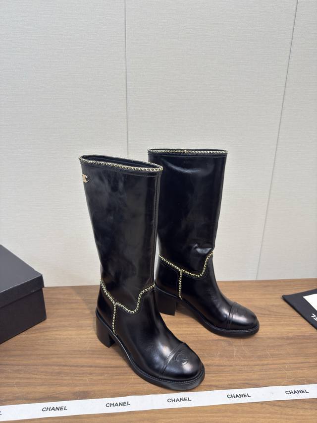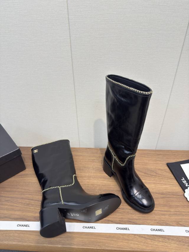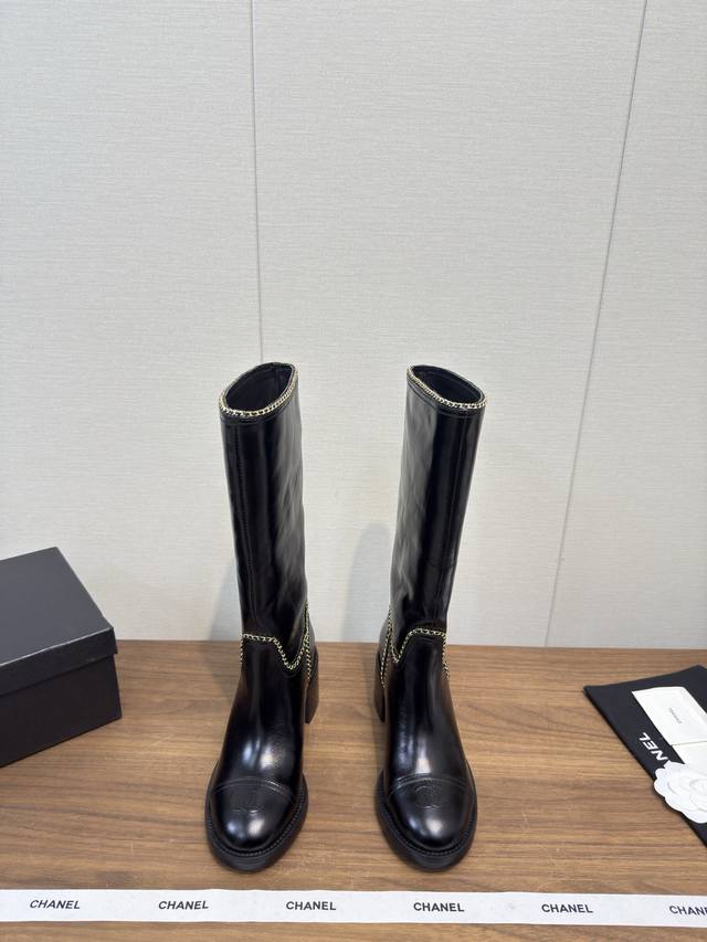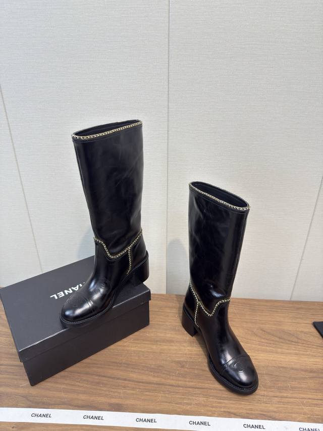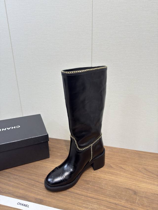 Chanel 25K 早秋秋冬靴复古风 链条切尔西长靴子 高版本 当香家长靴邂逅冬日 时尚与温暖共绽。漆皮的光泽如夜的深邃,绒面的柔和似午后暖阳,拼接设计巧妙勾勒精致轮廓。 经典元素融入每一处细节,中跟是优雅与舒适的完美平衡。 无论是漫步都市街头 还是赴一场优雅聚会,它都能让你在人群中熠熠生辉,成为时尚焦点 每一步都踏出独有的魅力! 鞋面:定制原版牛皮 内里垫脚:羊皮 鞋底:原版复刻真皮大底 跟高:7.5 码数:35-39 40.41定做不退换