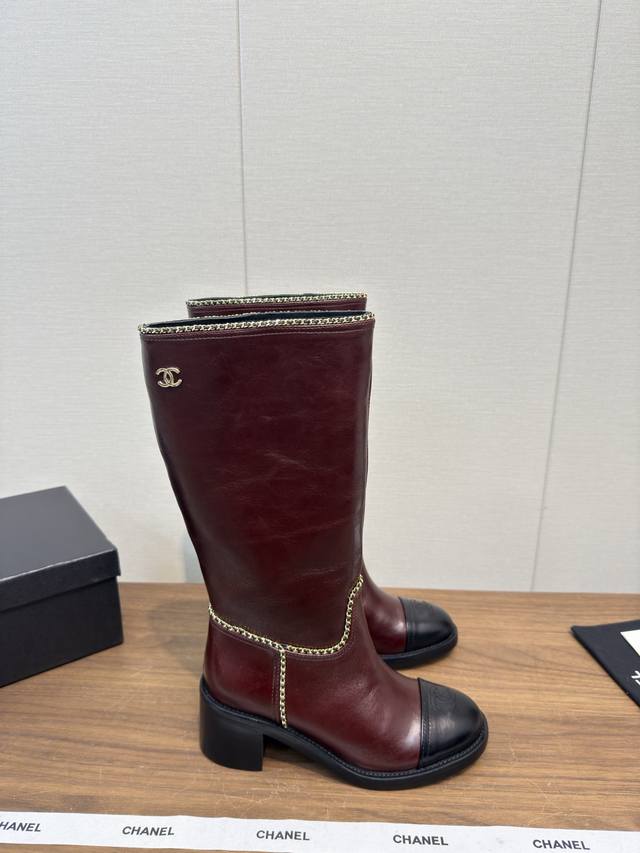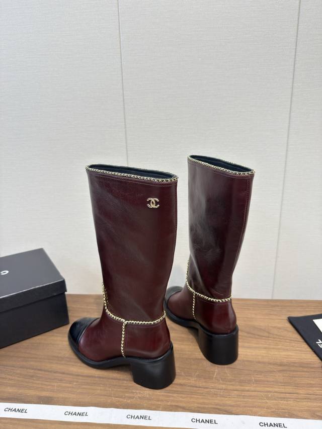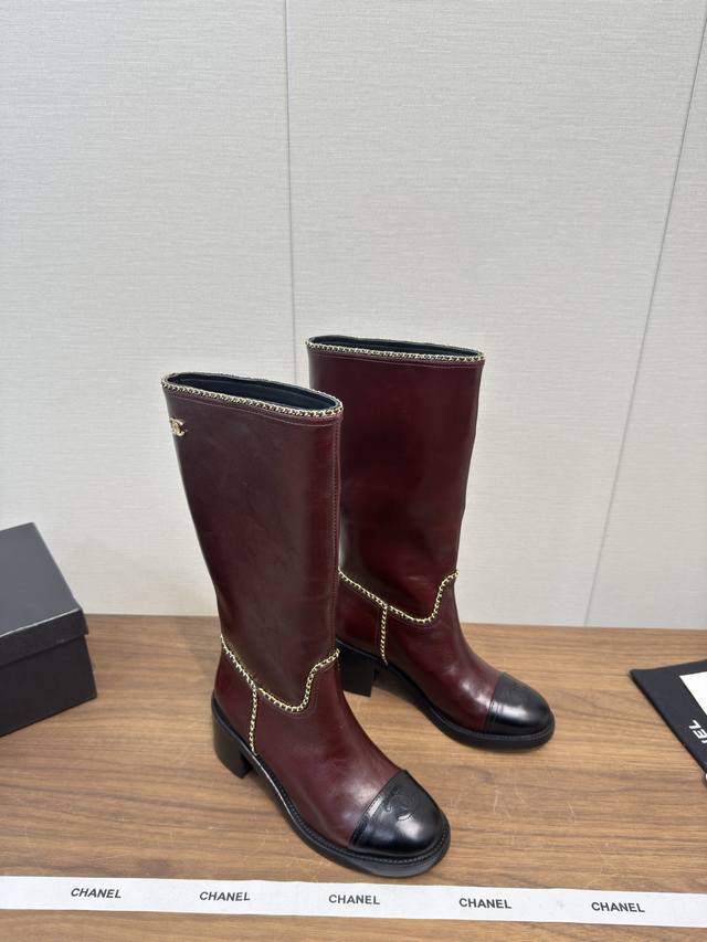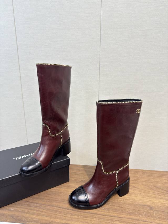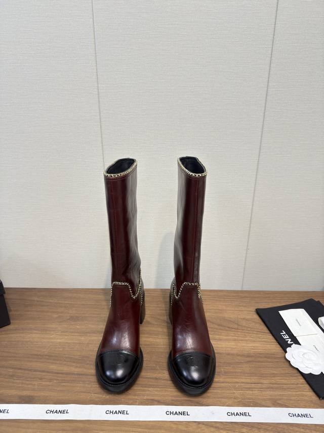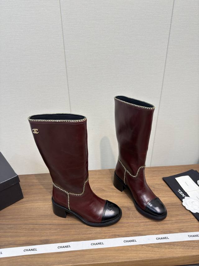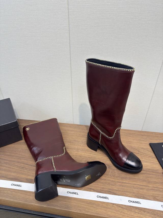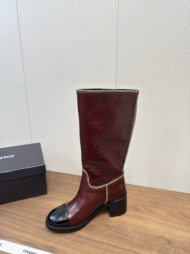 Chanel 25K 早秋秋冬靴复古风 链条切尔西长靴子 高版本 当香家长靴邂逅冬日 时尚与温暖共绽。漆皮的光泽如夜的深邃,绒面的柔和似午后暖阳,拼接设计巧妙勾勒精致轮廓。 经典元素融入每一处细节,中跟是优雅与舒适的完美平衡。 无论是漫步都市街头 还是赴一场优雅聚会,它都能让你在人群中熠熠生辉,成为时尚焦点 每一步都踏出独有的魅力! 鞋面:定制原版牛皮 内里垫脚:羊皮 鞋底:原版复刻真皮大底 跟高:7.5 码数:35-39 40.41定做不退换