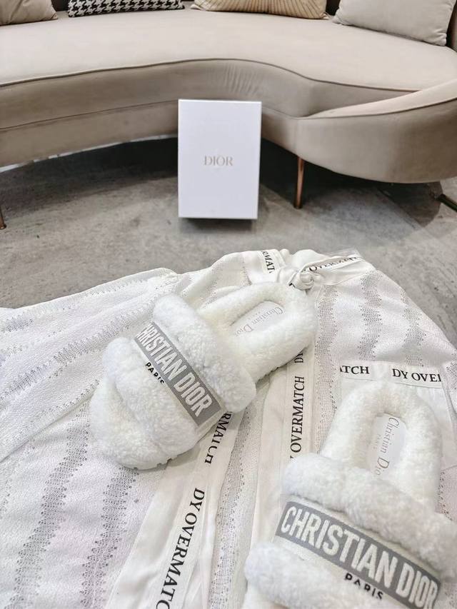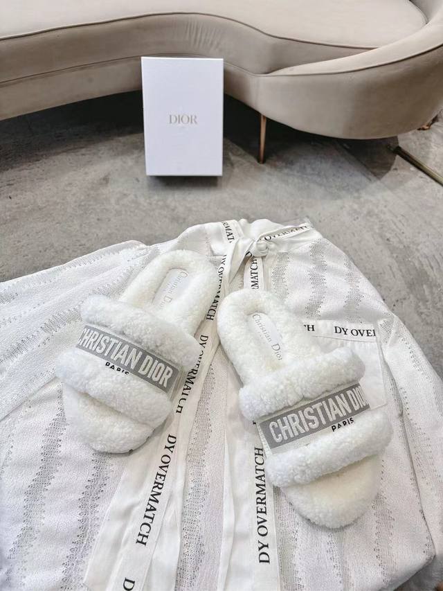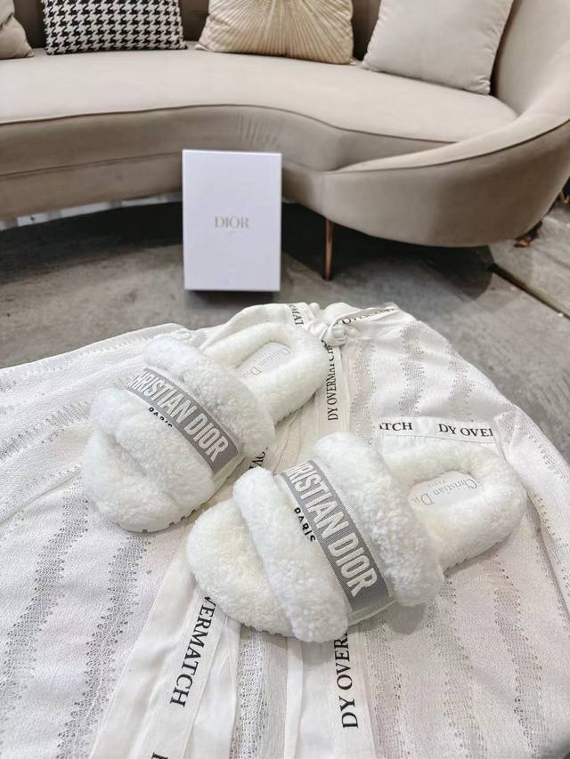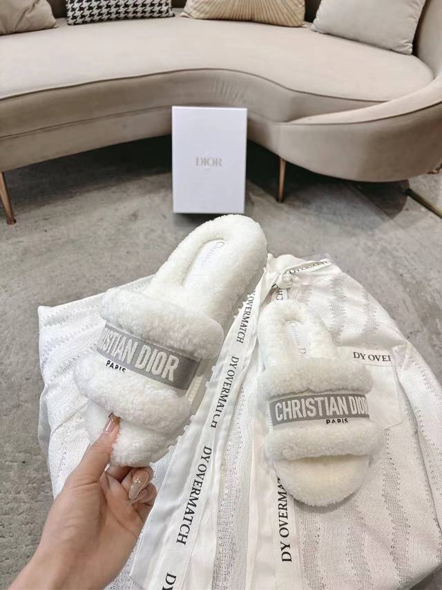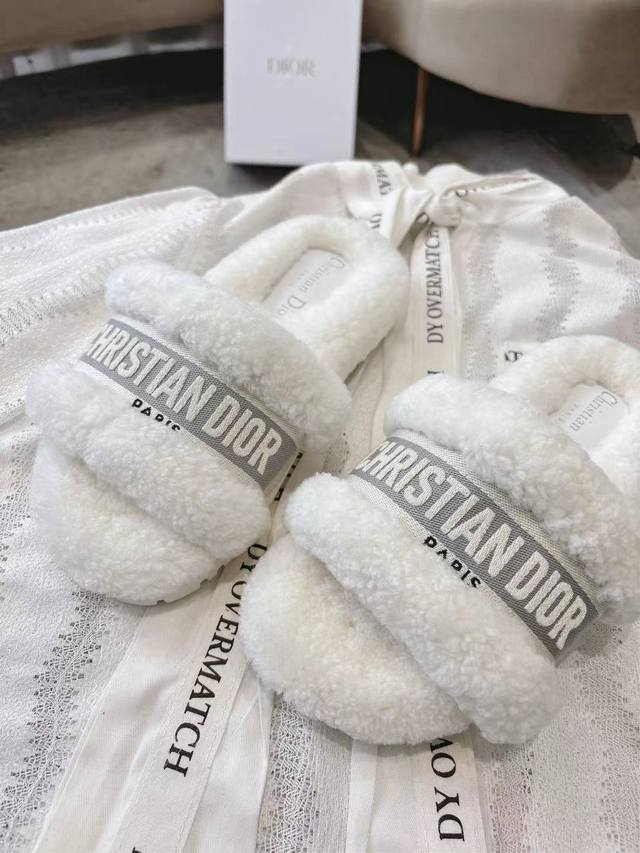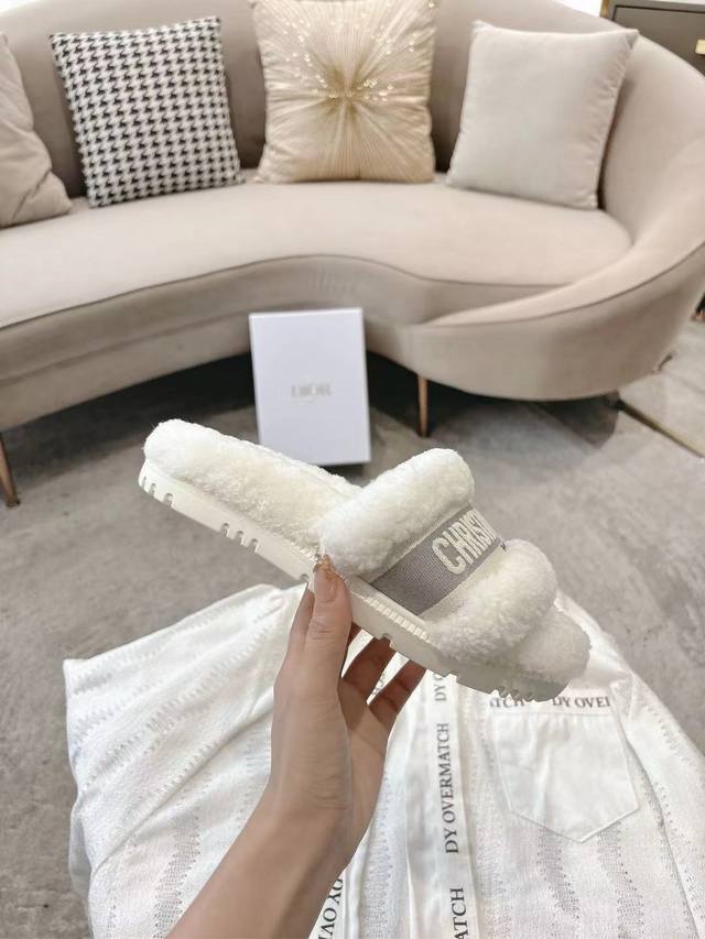 Dior毛拖全新升级版 迪奥秋冬刺绣羊毛拖鞋 软软糯糯的全真羊毛鞋面搭配刺绣,垫脚Logo采用头层打蜡牛皮,原版开模成型防滑大底,洋气百搭又舒服,俘获万千少女的心,秋冬必备单品。 Size: 35-39码 40 41 42定做码数不退不换