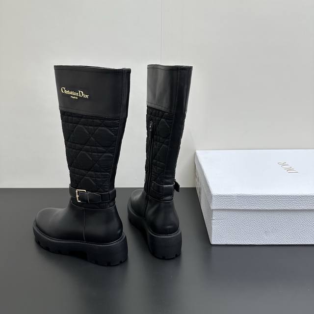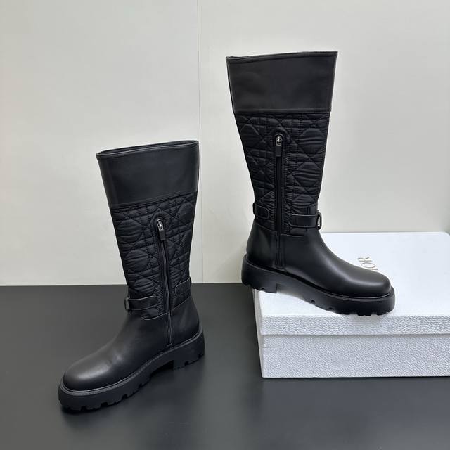 Dior迪奥秋冬最新款拼接骑士靴 长靴 超多明星网红种草 时尚与潮流同时拥有,可酷可帅的一款靴子,不仅颜值爆棚有品牌辨识度,刺绣的立体感也是超A哒!布面+进口头层牛皮+混种羊皮里 橡胶防滑耐磨底 原版全套包装 筒高33Cm 小腿维37Cm. 码数:35-41