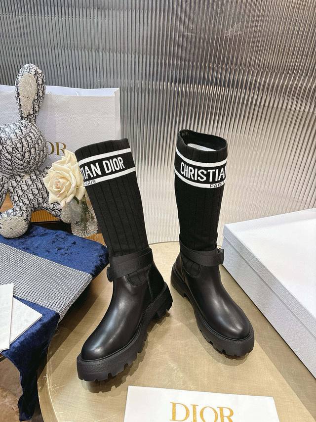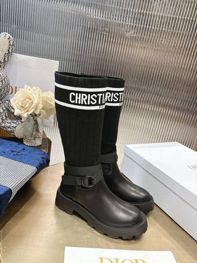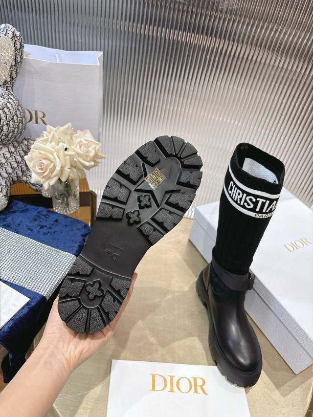 / Dior2025秋冬靴复古工装靴 一脚蹬弹力袜子靴 好穿好看又帅气 鞋面:进口小牛皮拼接最新进口科技电绣面料 非市面普通飞织面料 垫脚:水染牛皮内里垫脚 非市面