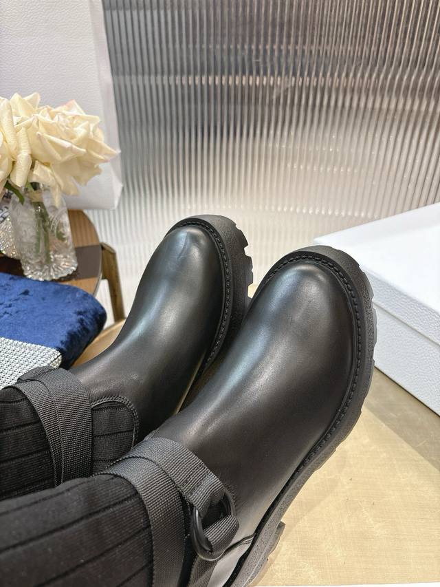 Dior2025秋冬靴复古工装靴 一脚蹬弹力袜子靴 好穿好看又帅气 鞋面:进口小牛皮拼接最新进口科技电绣面料 非市面普通飞织面料 垫脚:水染牛皮内里垫脚 非市面