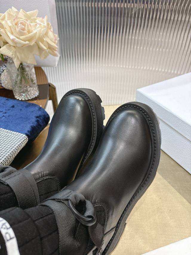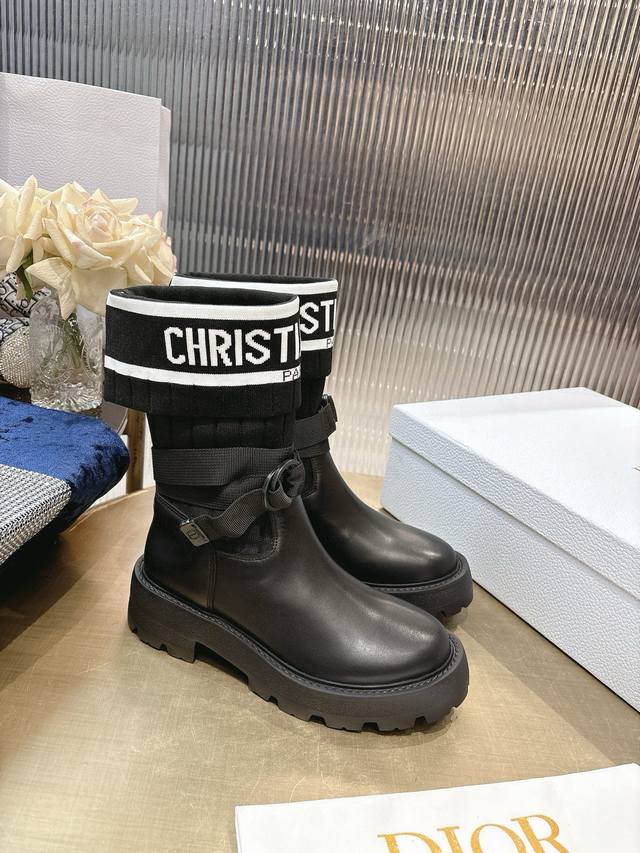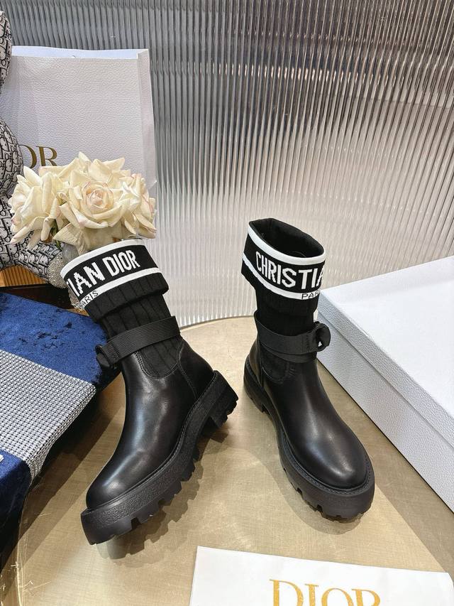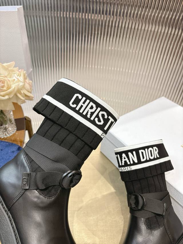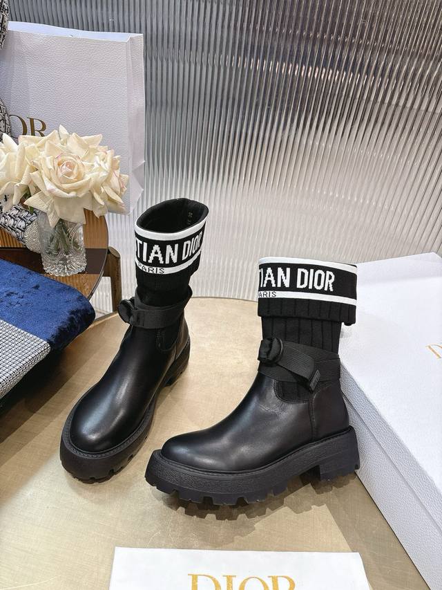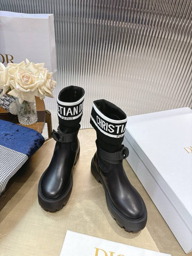 / Dior2025秋冬靴复古工装靴 一脚蹬弹力袜子靴 好穿好看又帅气 鞋面:进口小牛皮拼接最新进口科技电绣面料 非市面普通飞织面料 垫脚:水染牛皮内里垫脚 非市面