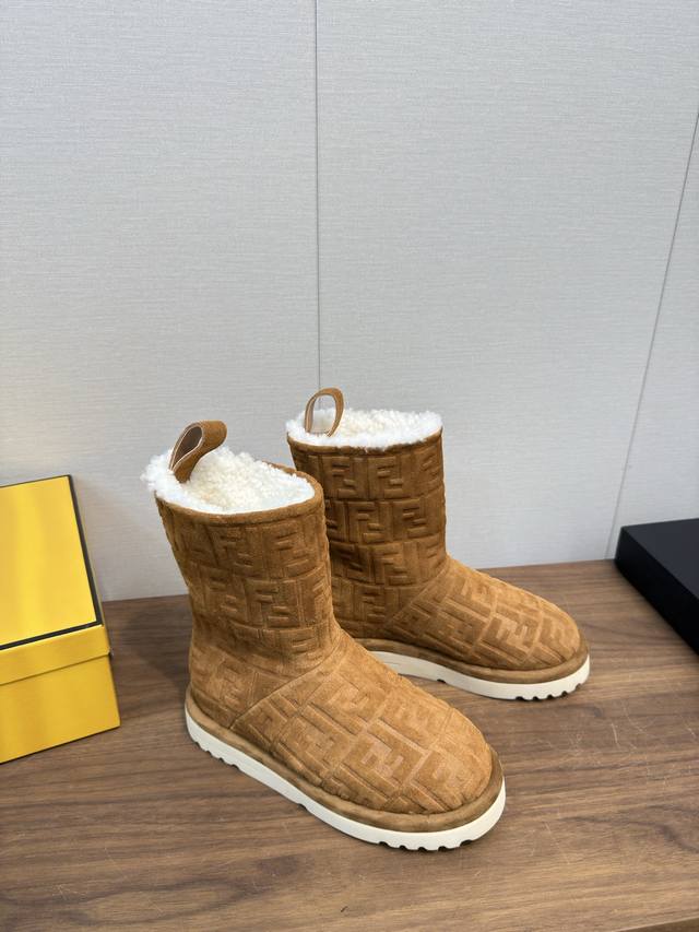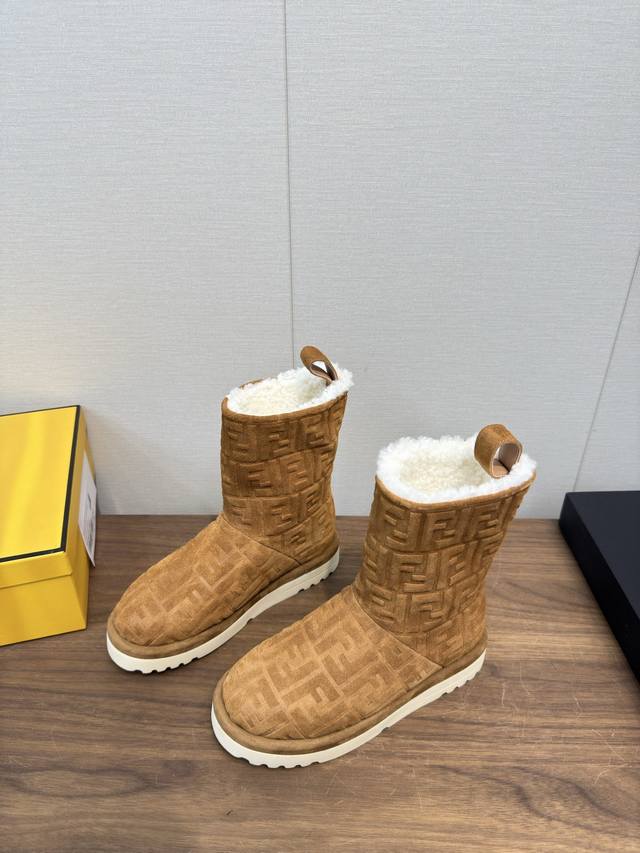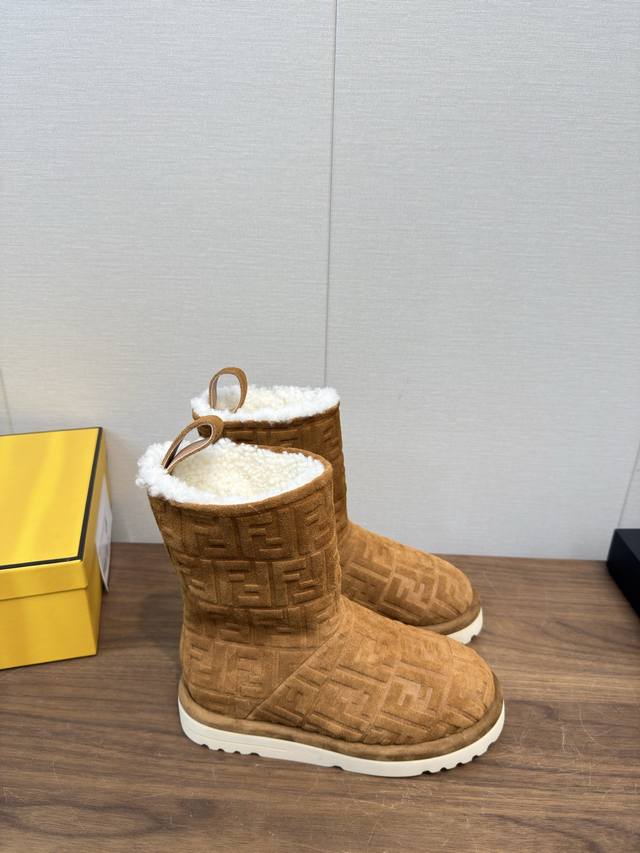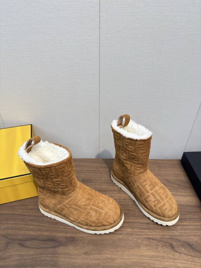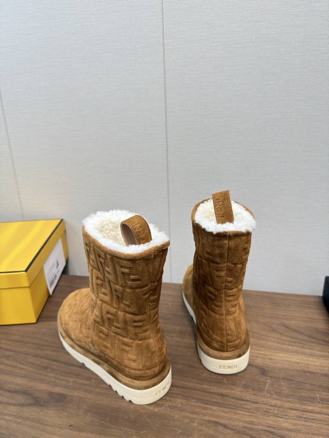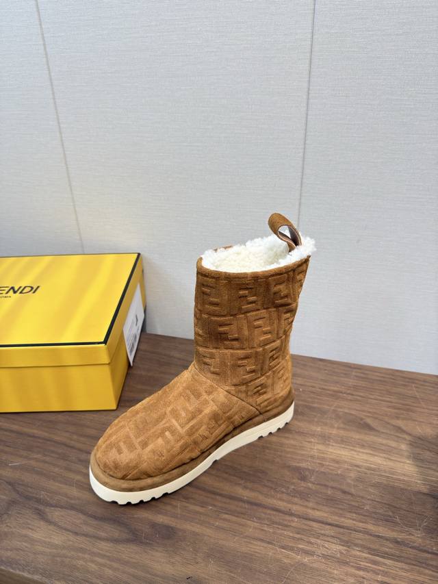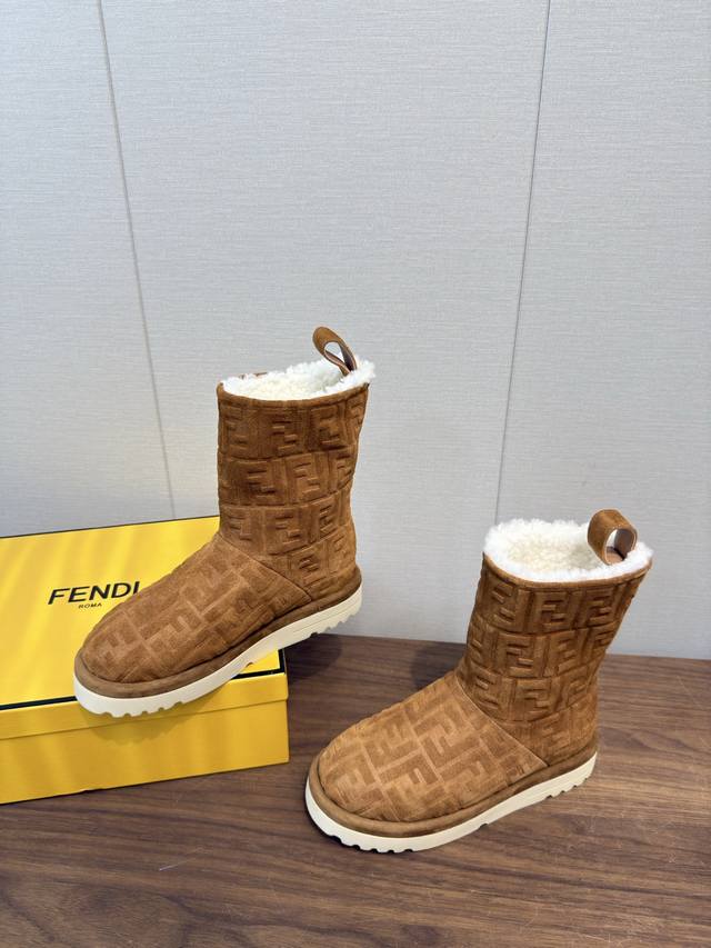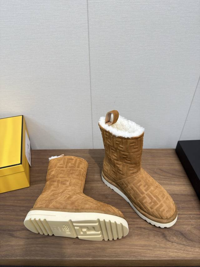 Fendi芬迪2025 Ss秋冬新款中靴直筒靴 雪地靴 长靴 保暖羊毛雪地靴 芬迪又出美靴啦 头层牛皮面料搭配F家经典老花、牛绒压花 牛皮位全油边、后包高周波压
