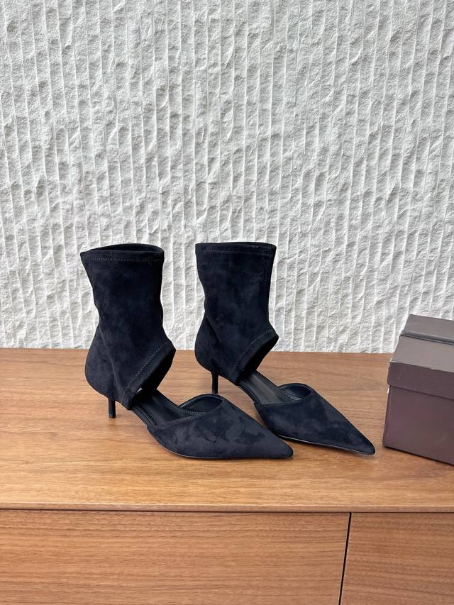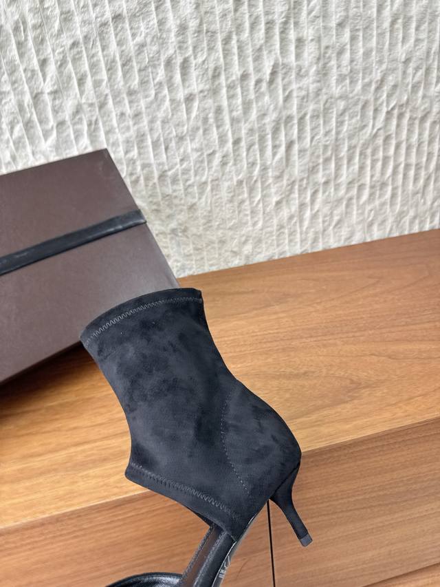 顶级版本: Alaia阿莱亚 极简风时髦精方头短靴高跟 一脚蹬弹力靴 紧肤小腿 9Cm 跟高 靴子 Alaia 来自巴黎 一见倾心 绒面...