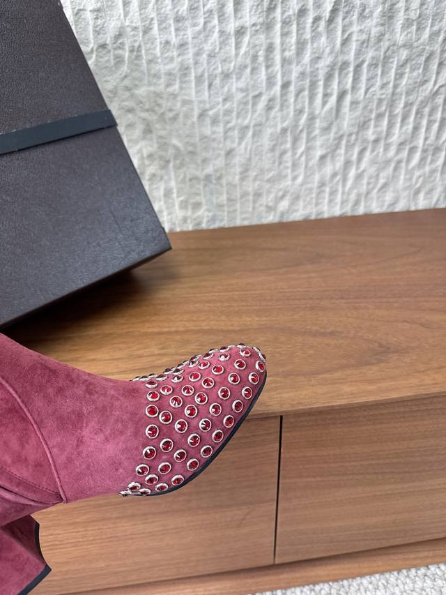 G101 Alaia 阿莱亚 25Ss秋冬新款 水晶钻 烫钻 侧拉链 粗跟 踝靴 Bling Bling 水晶钻踝靴,采用镶钻工艺设计,搭配5.5Cm鞋跟,更加