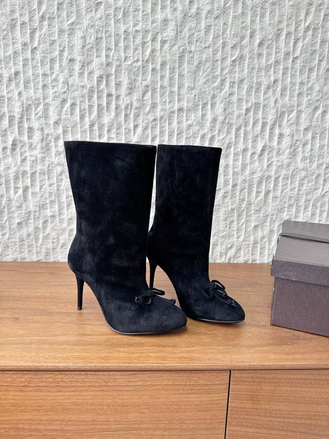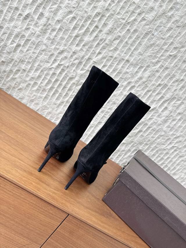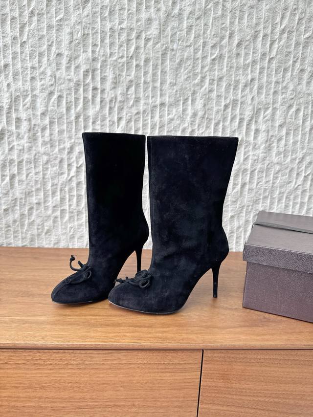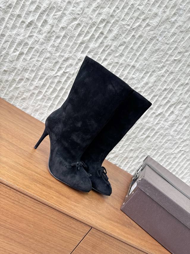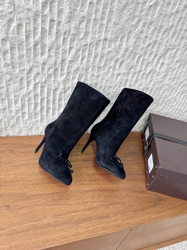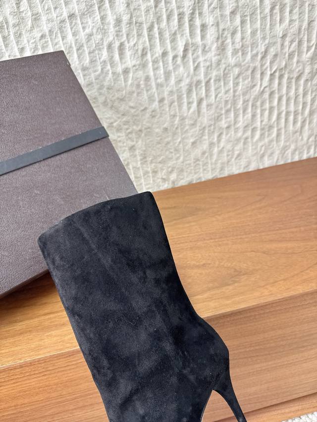 G101 Alaia 阿莱亚 25Ss秋冬新款 高跟 马毛 直筒 短靴 更加拉长腿部线条比例 绒面皮山羊皮制成,轻松打造摩登型格。 风格一如其时装,性感而又摩登