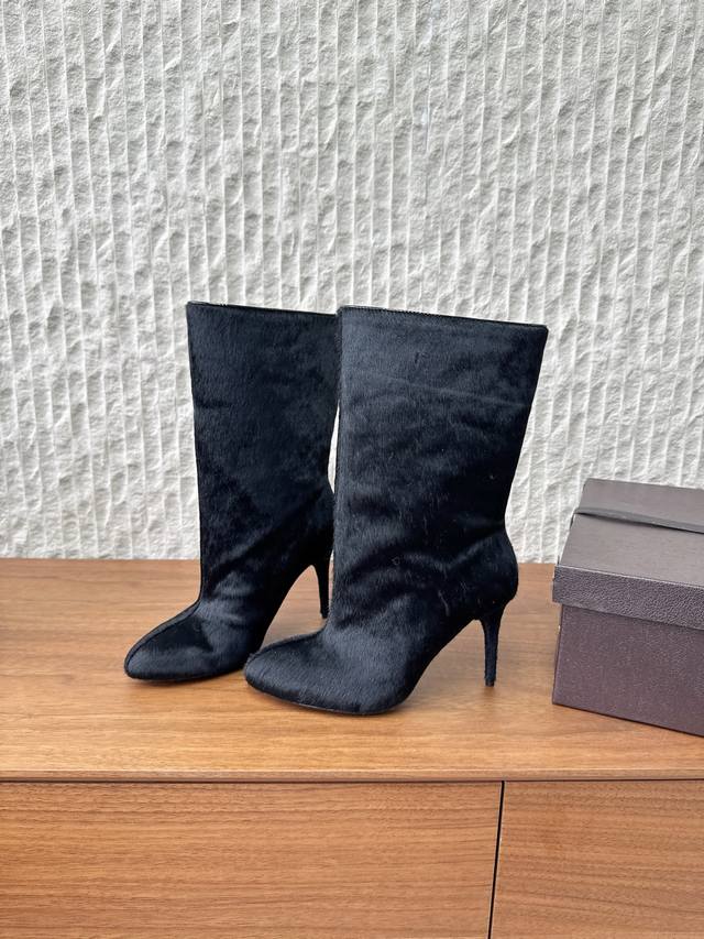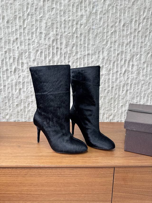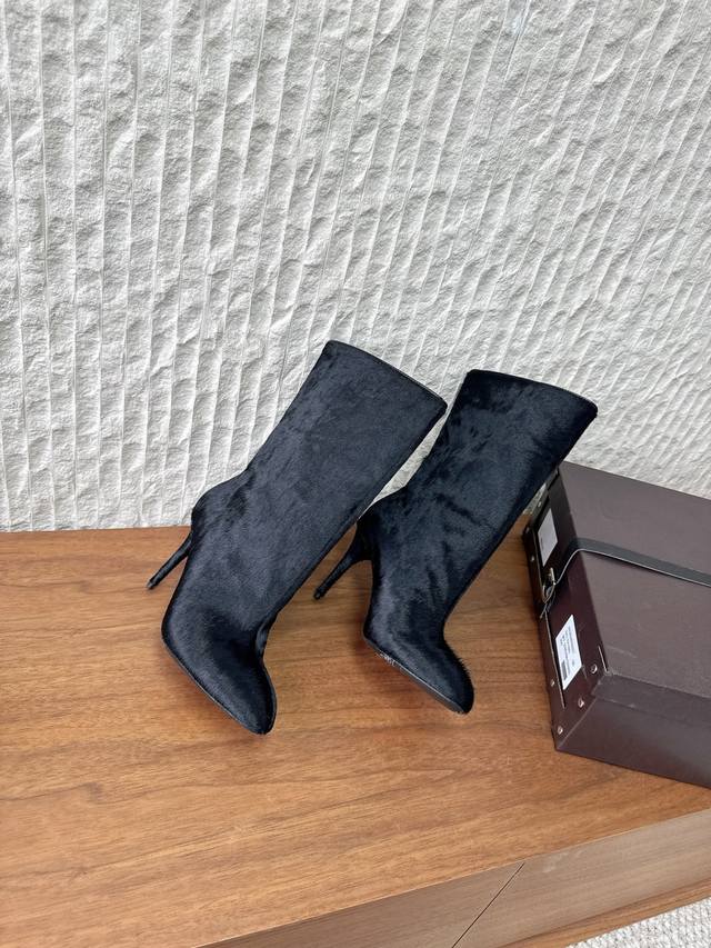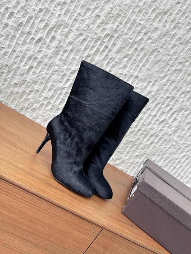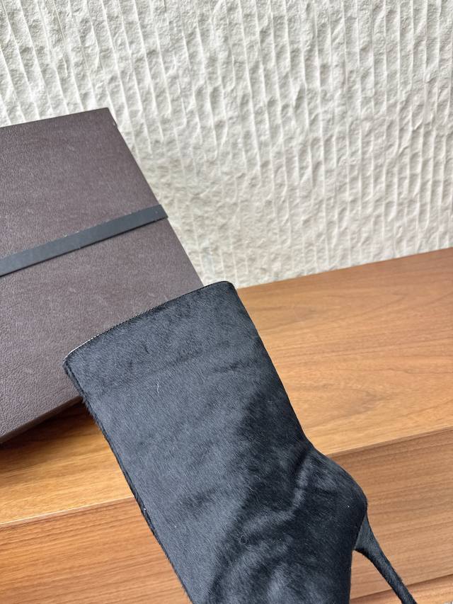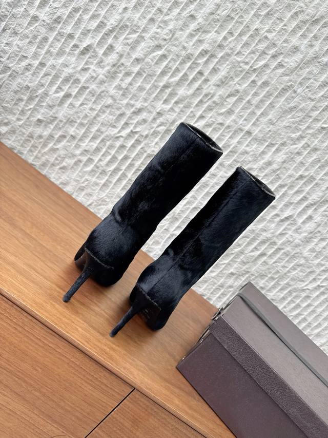 / G101 Alaia 阿莱亚 25Ss秋冬新款 高跟 马毛 直筒 短靴 更加拉长腿部线条比例 绒面皮山羊皮制成,轻松打造摩登型格。 风格一如其时装,性感而又摩登
