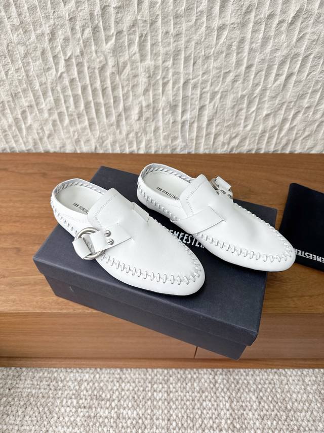G101 Ann Demeulemesster 小众潮牌 25Ss秋冬新款 穆勒半拖 安特卫普创意总监Stefano Gallici以”游牧精神“为灵感,将品牌标志性的暗黑浪漫基因与70年代嬉皮士、机车文化及美国西南部风情相融合。 本系列通过解构主义剪裁与浪漫荷叶边的碰撞,毛边处理与凌乱层次的叠搭,完美诠释了”带着诗集穿越沙漠的叛逆诗人“这一意象。包袋鞋履也保持先锋的设计亮点 19世纪浪漫主义与90年代摇滚美学的交织,创造出兼具安特卫普先锋精神与美国西部自由气息的独特美学语言。 鞋面:采用原版进口牛皮 内