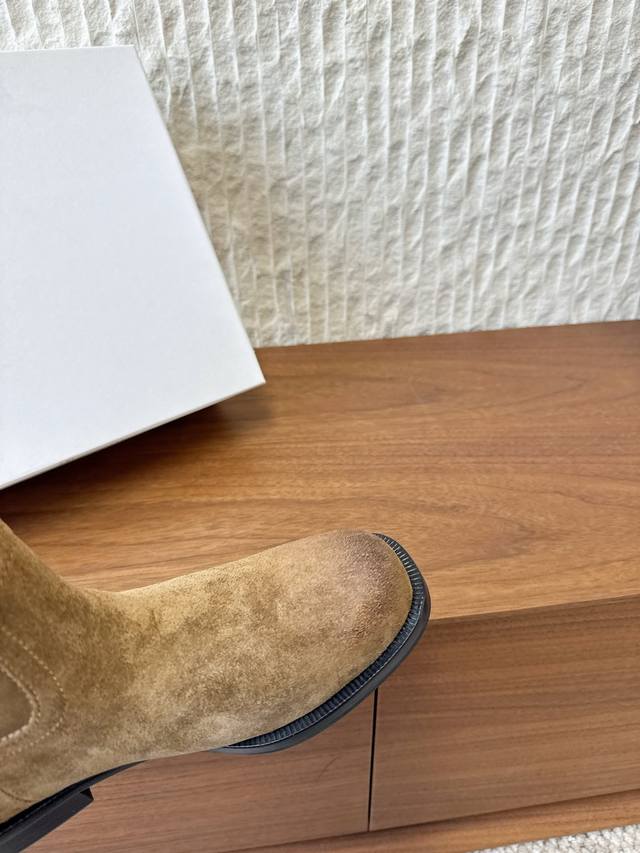 G299 Celine 赛琳 25Ss秋冬新品 复古粗跟 切尔西 西部靴 短靴 塞琳这一季好看的款式真的是很多 比如这款军靴就很机车风 重点夸夸靴筒设计 完全不挑腿型 上脚秒变大长腿,超级显瘦又百搭!简直绝绝子了 鞋面:采用原版进口麂皮 小牛皮 内里垫脚:羊皮 大底:原版定制意大利真皮大底 Size:35-39 40.41定做不退换