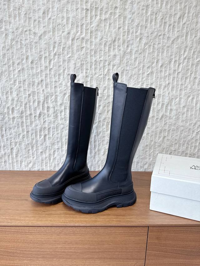 G658 Alexander Mcqueen 麦昆 25Ss秋冬新款 厚底 弹力 后拉链 长靴 极简主义炒鸡柔软舒适矮跟鞋时髦绝对不能错过的必入款,没有如何繁杂