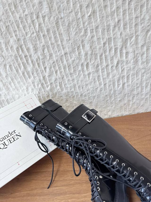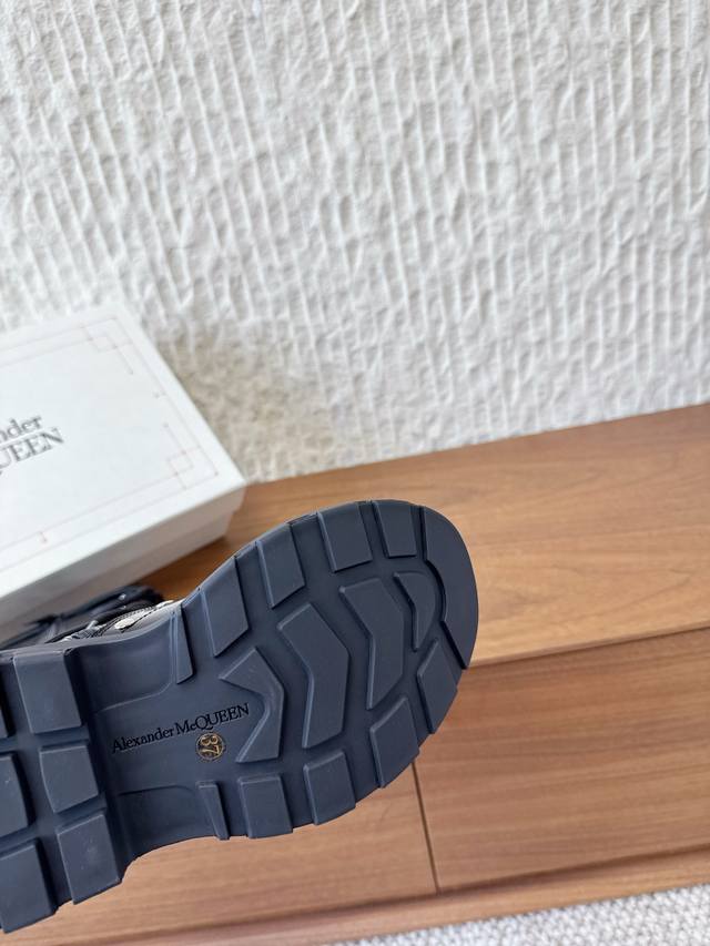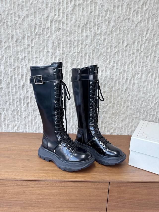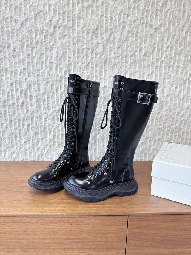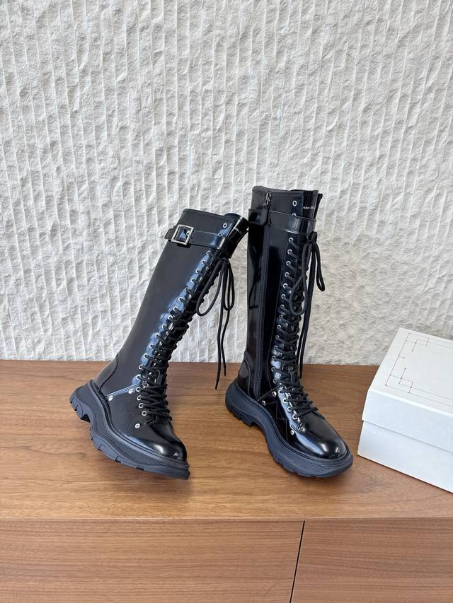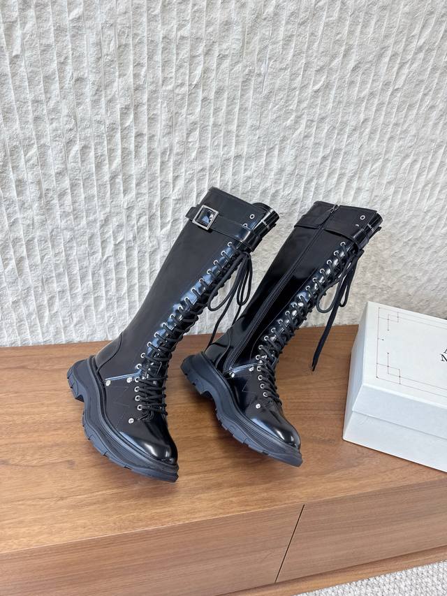 G658 Alexander Mcqueen 麦昆 25Ss秋冬新款 厚底 系带 侧拉链 长靴 极简主义炒鸡柔软舒适矮跟鞋时髦绝对不能错过的必入款,没有如何繁杂装饰质感极好的Vintage感,纯粹和极简做得利落又诗意 百搭不易撞款 方头设计超级减龄 其次在继承了优雅的基础上,也更加年轻时髦,以鲜艳的颜色和讲究的线条设计塑造时尚魅力! 鞋面:采用原版进口头层牛皮软漆皮 内里垫脚:羊皮 鞋底:原版定制橡胶大底大底 码数:35-40 40定不退换