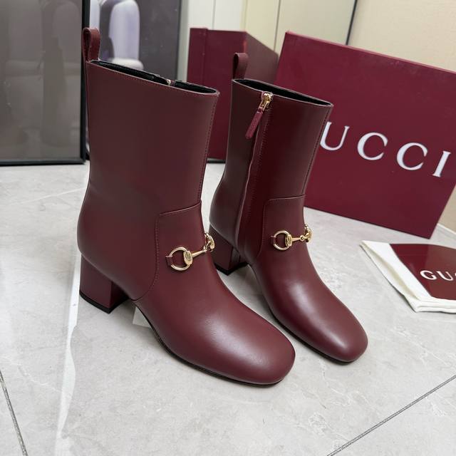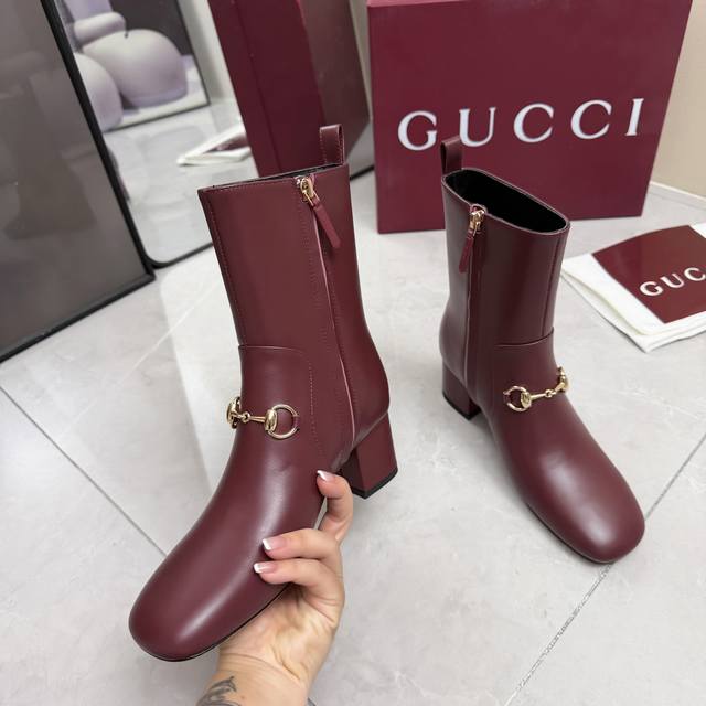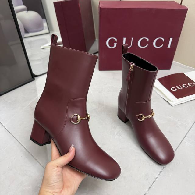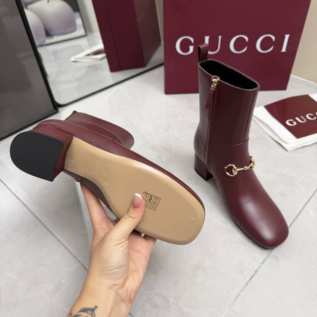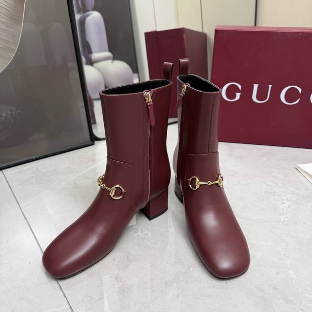 Gucci 古驰 秋冬款马衔扣短靴 经典的1955马衔扣 极简设计 没有一丝一毫的多余 半弧方形鞋头 饱满有型 整个鞋子的线条感是非常柔和的 弧度贴合脚型 侧拉链设计 方便穿脱 值得拥有 面料:进口小牛皮 内里:羊皮 大底:意大利真皮大底 跟高:5.5Cm 码数:35-40 41 42订制