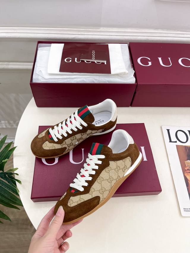 Gucci 古驰 25 2025秋冬新品 走秀款 Gucci Shift系列织带休闲运动鞋 主打系列终于面世,狠货值得期待!原有的经典 创造新设计 Bs代购级别!高级感十足!国内外博主刷爆的一款,复古又时髦 穿搭简便 上脚美炸了!官网主推,新色持续更新 T 鞋面:原版特定面料 内里: 进口羊皮里 大底:原版开模定制Tpu防滑大底 跟高:平底 鞋码: 女35-39 40.41可定做 男39-44 45.可定做 出厂价Pp: 男码10