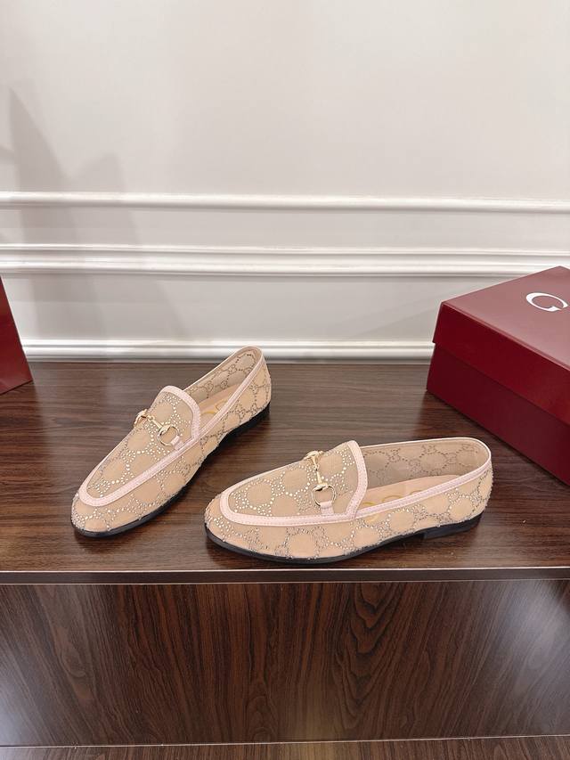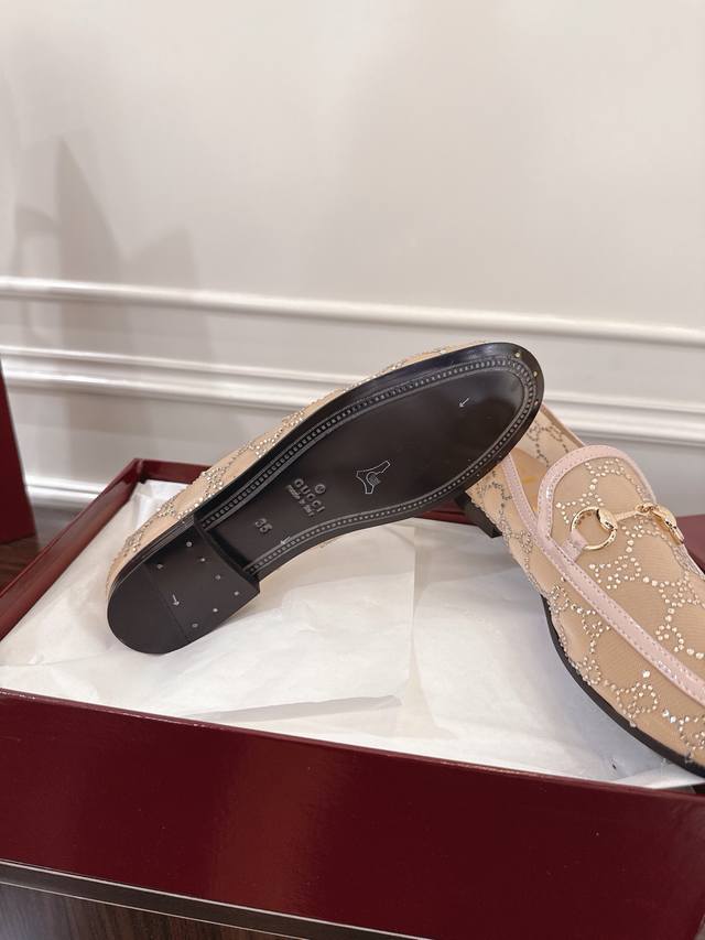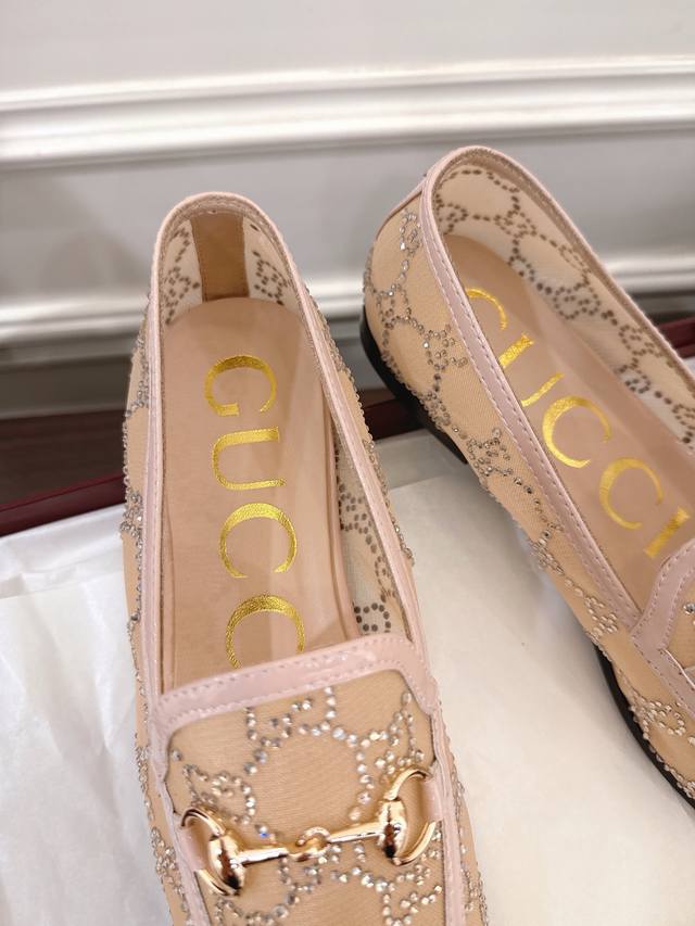Gucci Jordaan系列女士网纱水晶钻乐福鞋 作为Gucci设计传承的杰出代表,Jordaan系列饰马衔扣乐福鞋生动彰显经典优雅格调。这款鞋履这款鞋履甄选网纱水晶钻打造,匠心融蕴浅金色调经典马衔扣造型配件。 原版定制网纱水晶钻 内里定制羊皮 真皮大底 码数34-42 34 40 41 42定做不退换 胶底220真皮底