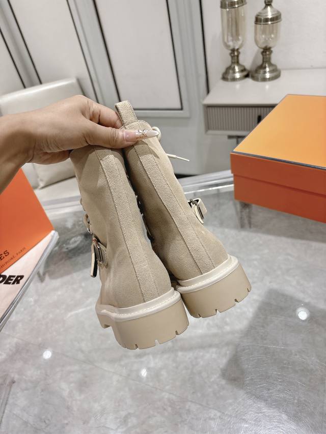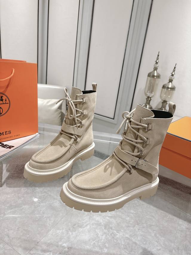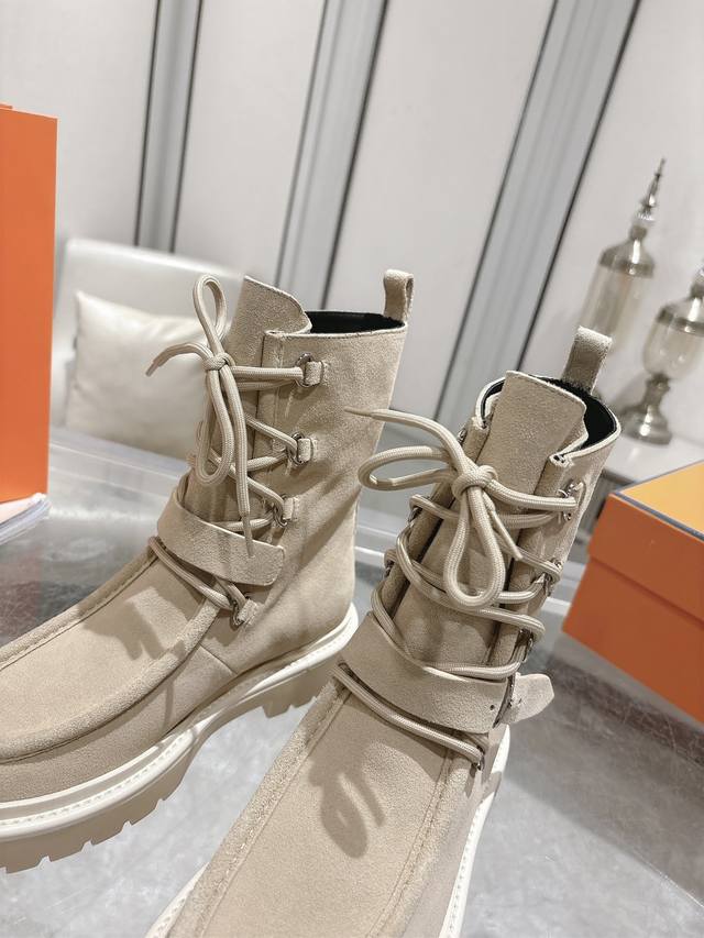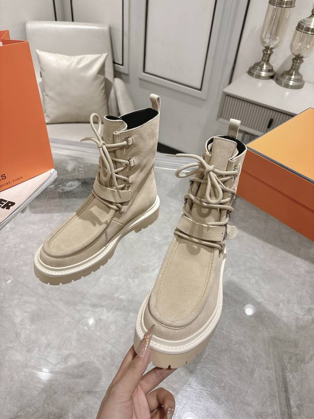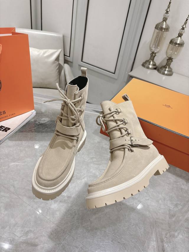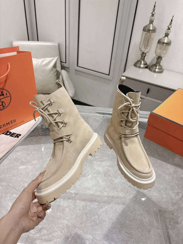 Hermes爱马仕Land厚底系带短靴马丁靴 小牛皮及踝靴,搭配橡胶厚底!打造大胆都市风格! 面料:进口小牛皮 牛京 内里:羊皮里 鞋底:原版开模防滑橡胶大底
