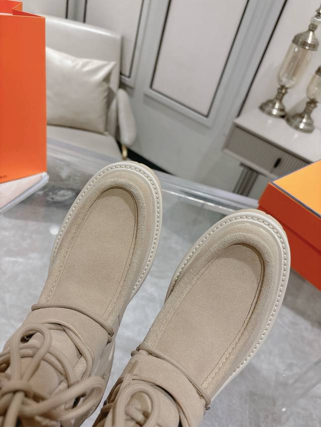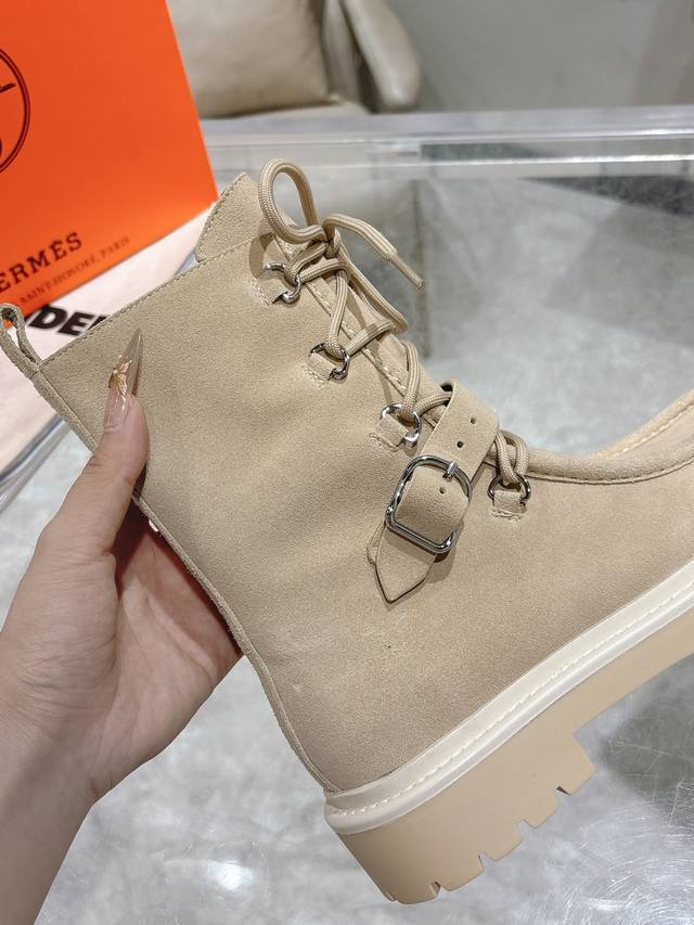 Hermes爱马仕Land厚底系带短靴马丁靴 小牛皮及踝靴,搭配橡胶厚底!打造大胆都市风格! 面料:进口小牛皮 牛京 内里:羊皮里 鞋底:原版开模防滑橡胶大底 Size:35-39 40定
