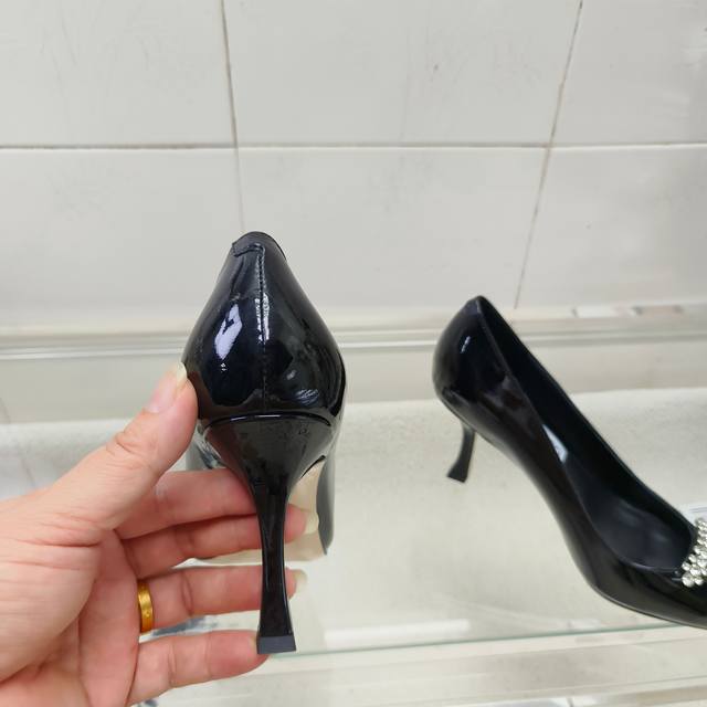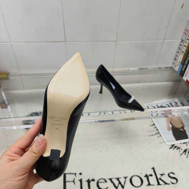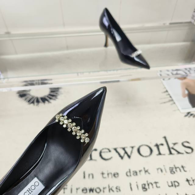 Jimmy Choo 周仰杰这一季的新款很美哟可以小小期待一下啦~新款Belinda搭配了8.5厘米可爱的小方跟,Bling Bling的水钻饰扣,搭配任何礼服裙子,轻松驾驭!鞋面V口,不挑脚型! 鞋面:进口软漆皮 内里:羊皮 跟高:8.5Cm 大底:意大利真皮大底 码数:35~39 34 40~43定做不退换